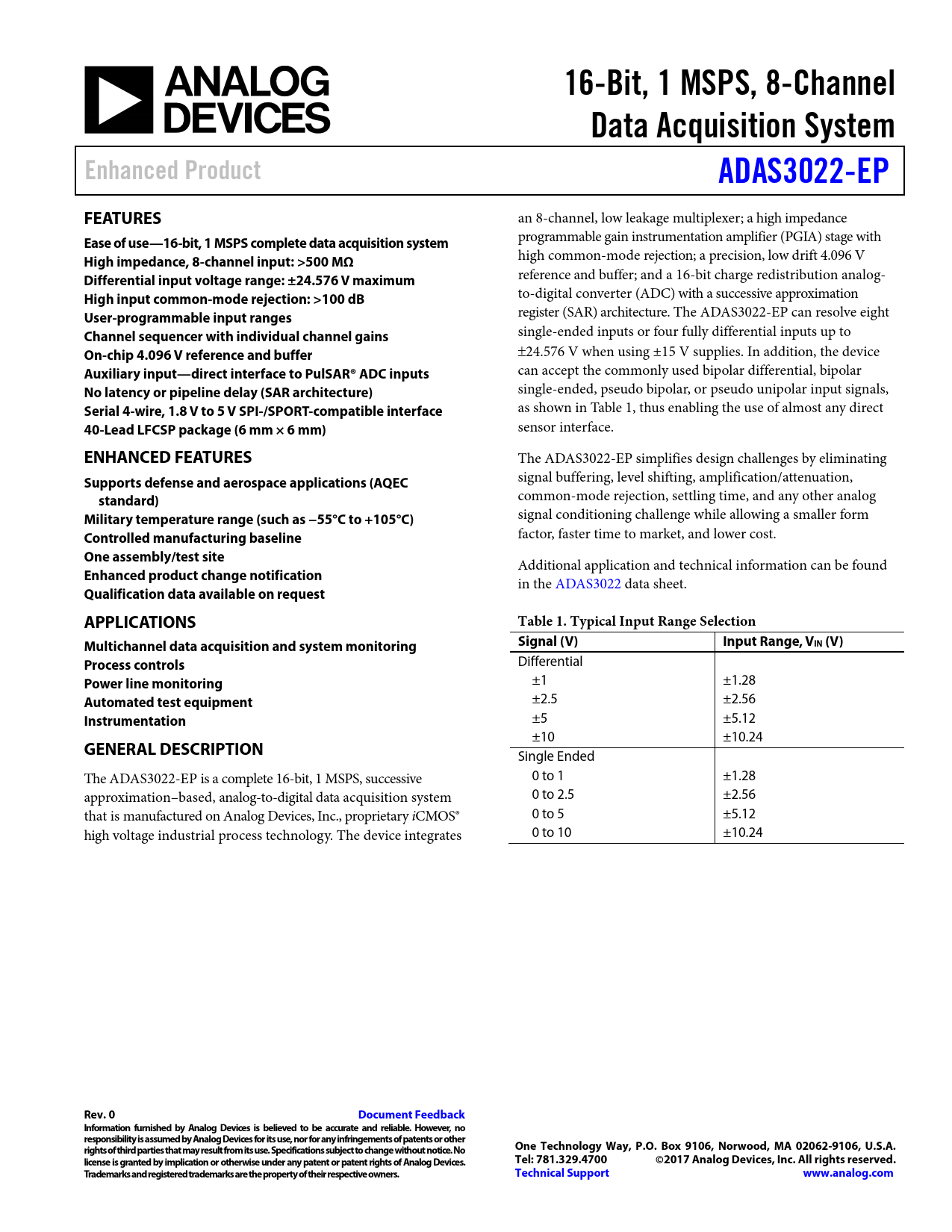 Datasheet ADAS3022-EP (Analog Devices)