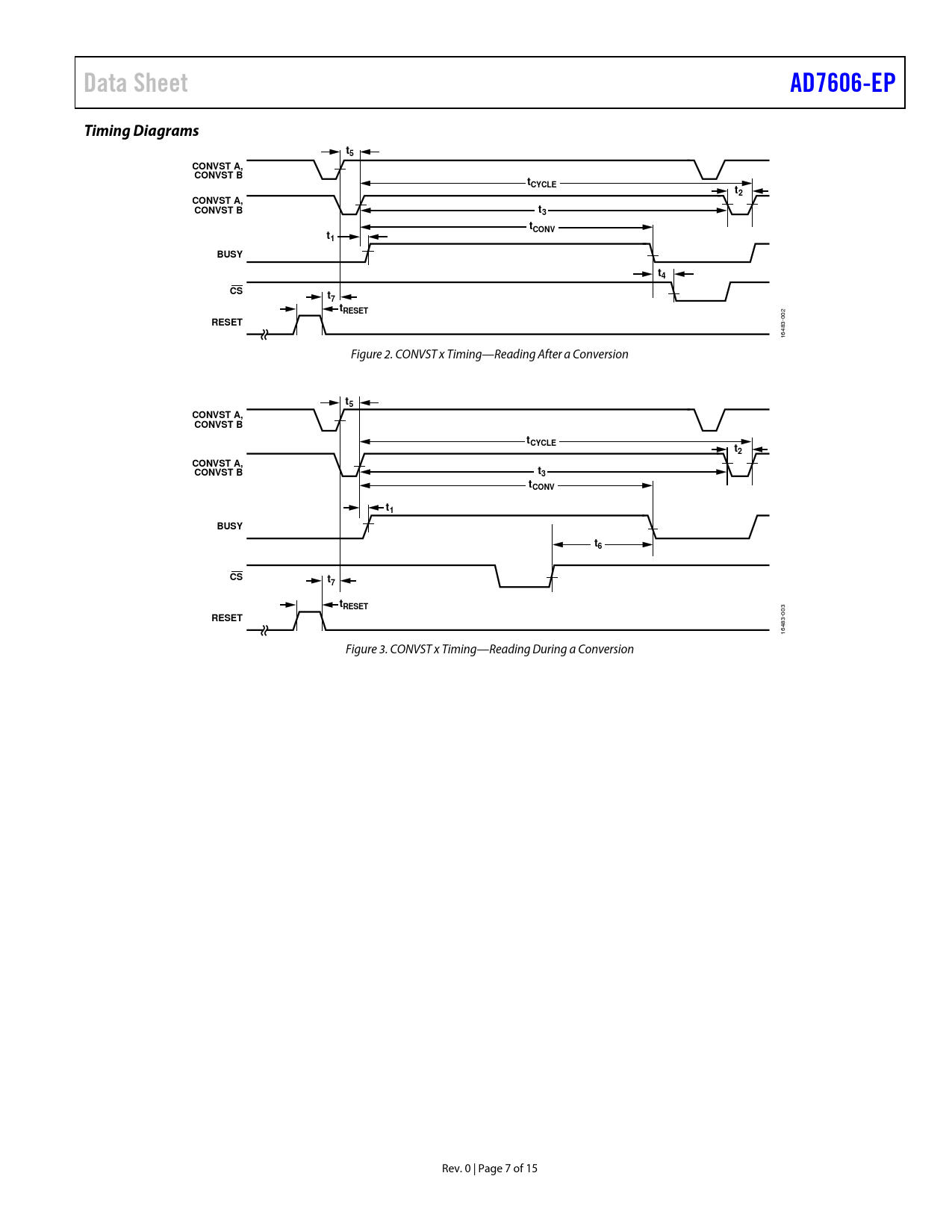 | 页数 / 页 | 15 / 7 — Data Sheet. AD7606-EP. Timing Diagrams. CONVST A,. CONVST B. tCYCLE. … |
