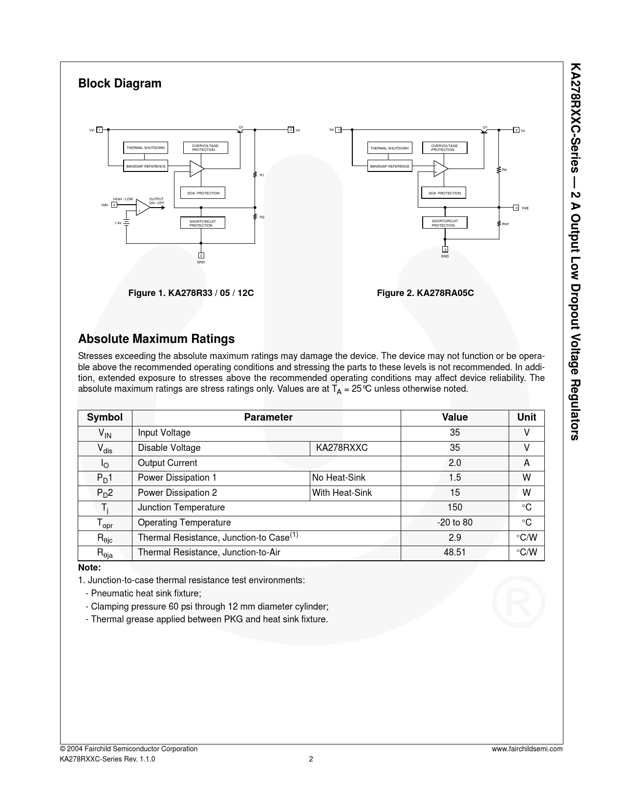 PROTECTION Rref 3 3 GND GND Figure 1. KA278R33 / 05 / 12C Figure 2. KA278RA05C Absolute Maximum Ratings