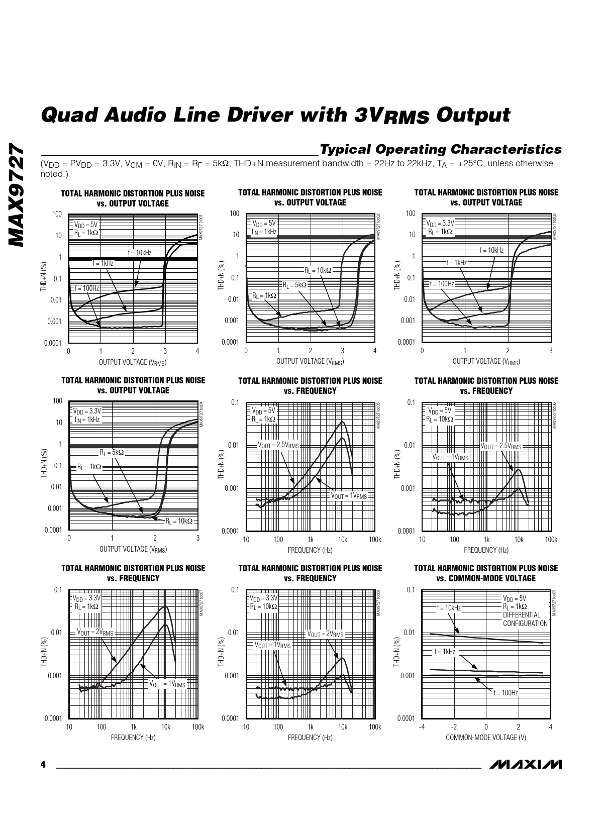 Quad Audio Line Driver with 3VRMS Output. Typical Operating Characteristics. TOTAL HARMONIC DISTORTION PLUS NOISE