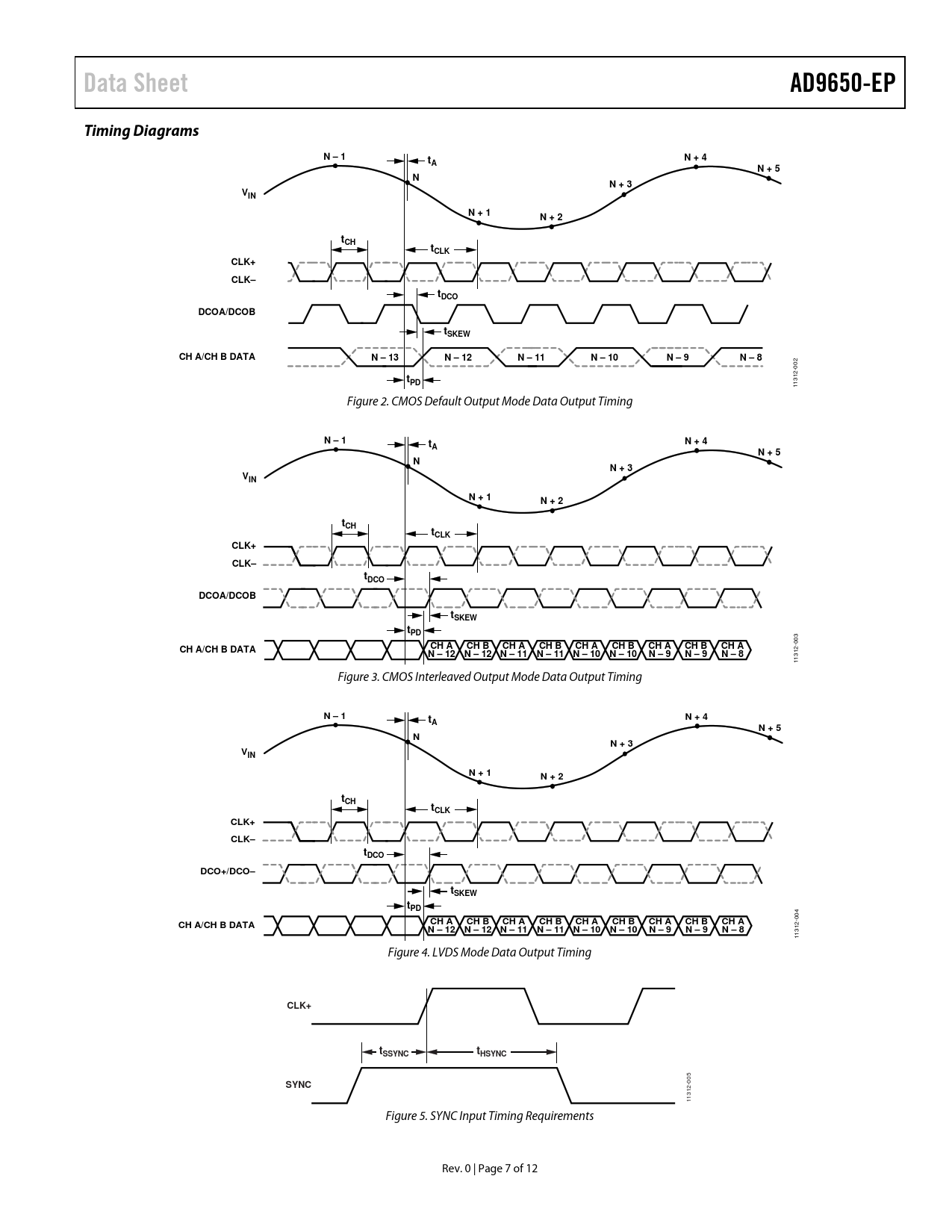| 页数 / 页 | 12 / 7 — Data Sheet. AD9650-EP. Timing Diagrams. N – 1. N + 4. N + 5. N + 3. VIN. … |