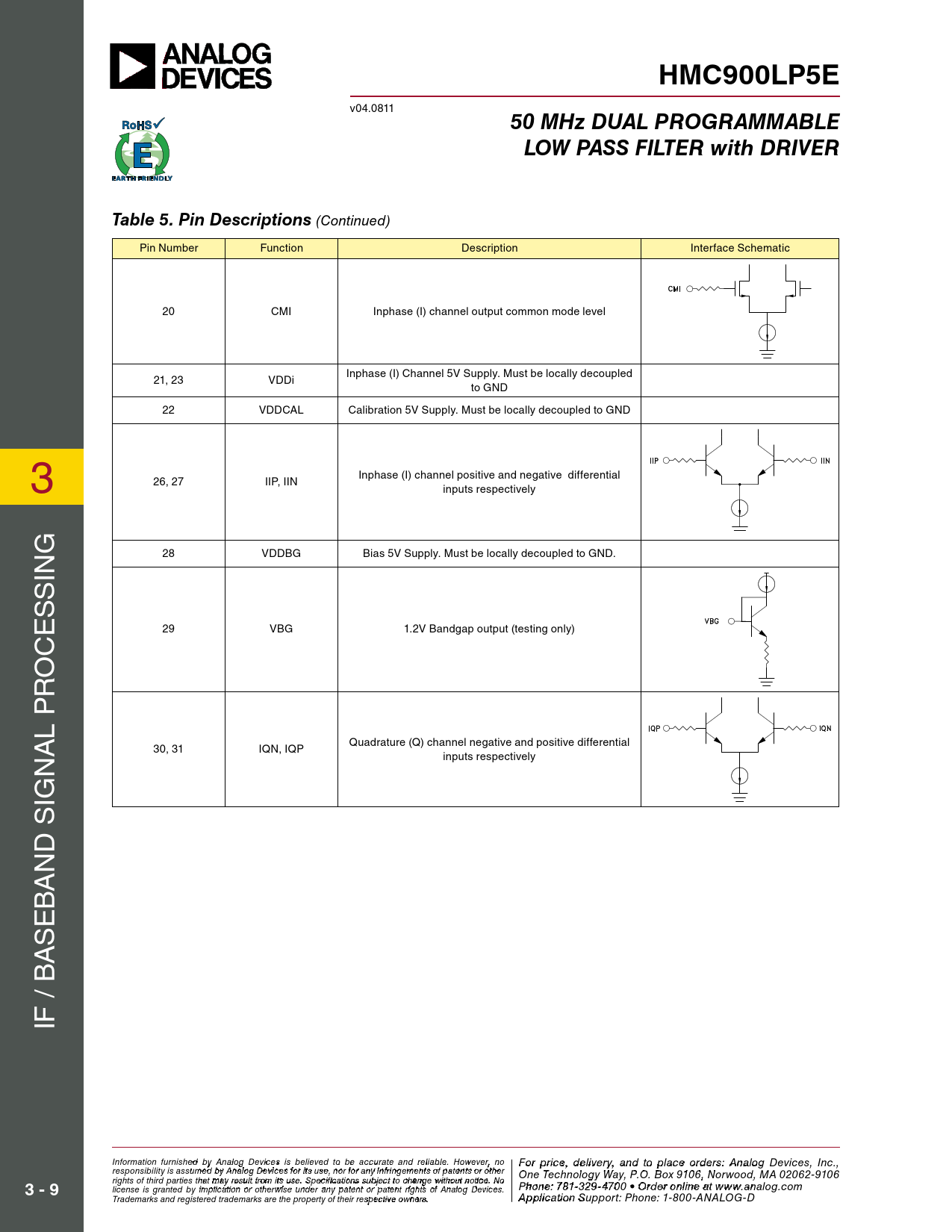 HMC900LP5E. 50 MHz DUAL PROGRAMMABLE. LOW PASS FILTER with DRIVER. Table 5. Pin Descriptions. 3 - 9