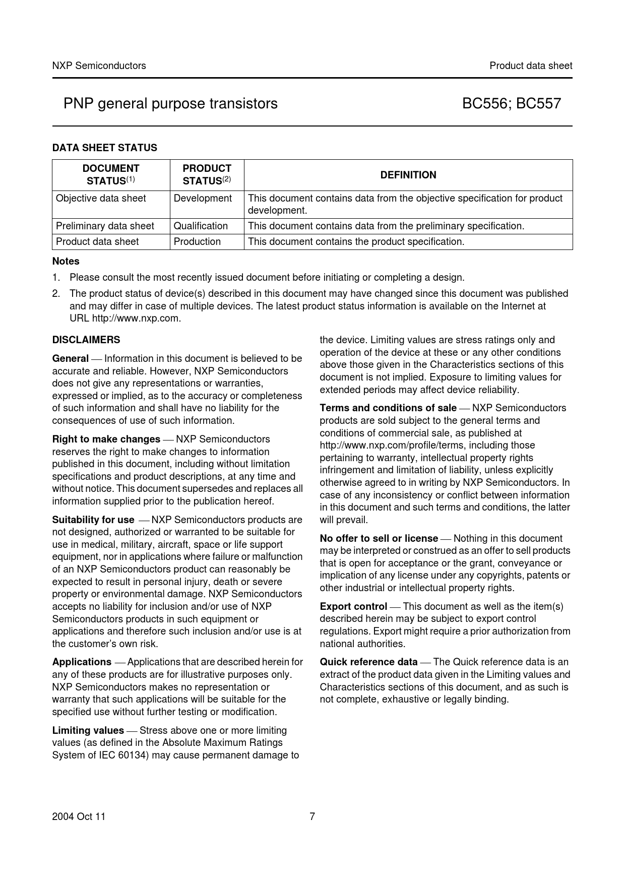 link to page 7 link to page 7 NXP Semiconductors Product data sheet PNP general purpose transistors BC556; BC557