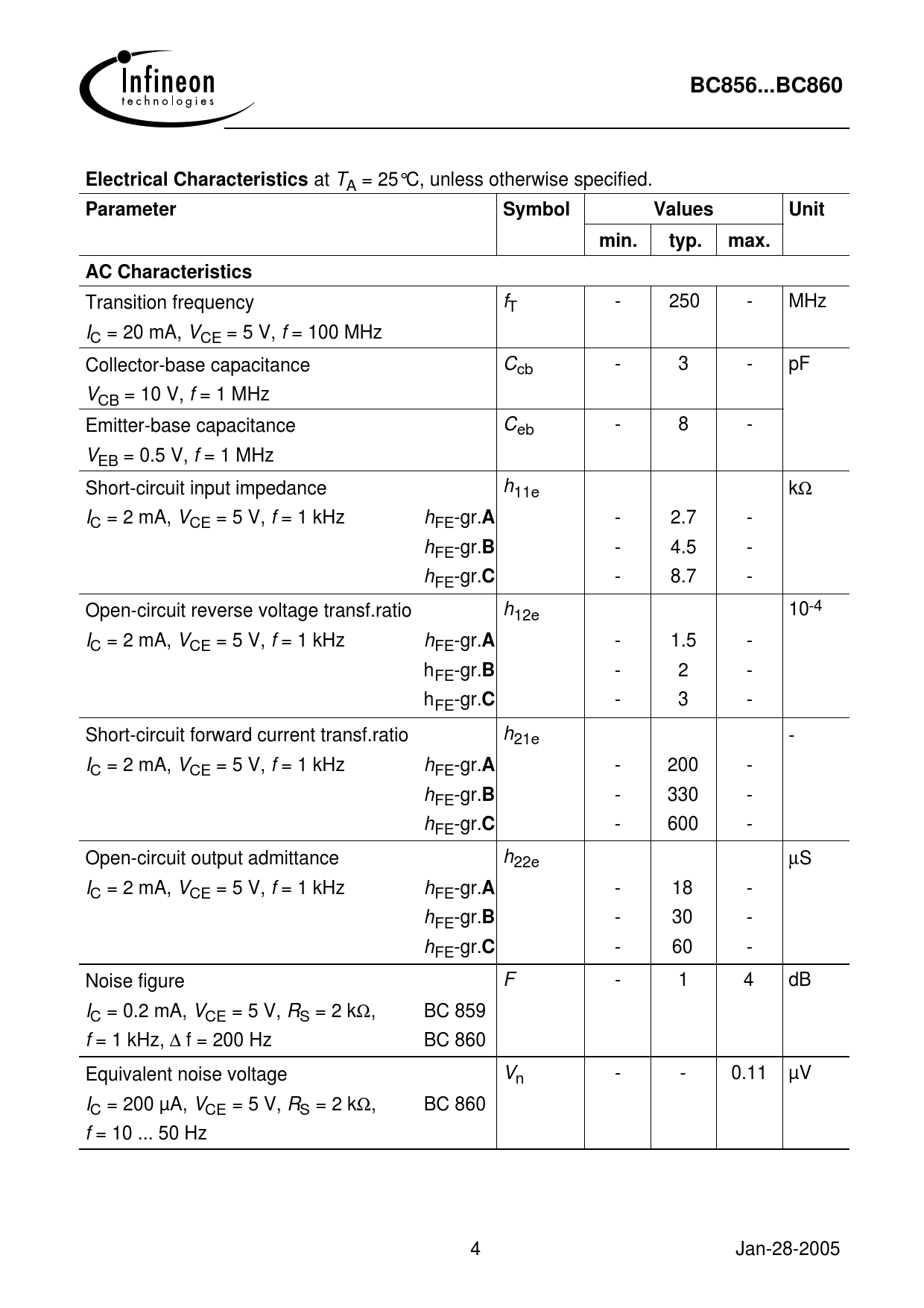 | 页数 / 页 | 10 / 4 — BC856...BC860. Electrical Characteristics. Parameter. Symbol. Values. … |