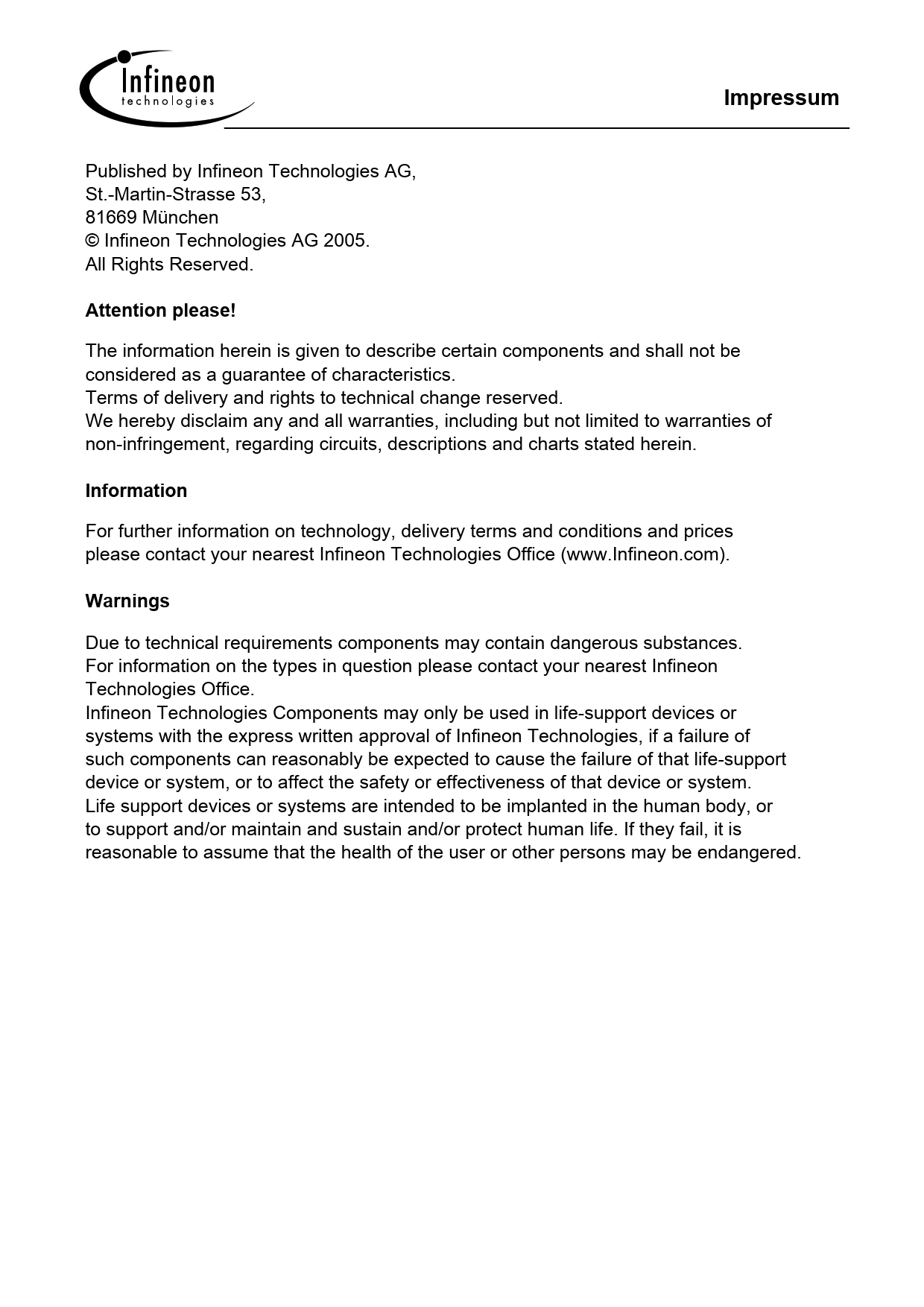 Published by Infineon Technologies AG, St.-Martin-Strasse 53, 81669 München © Infineon Technologies AG 2005. All Rights Reserved.