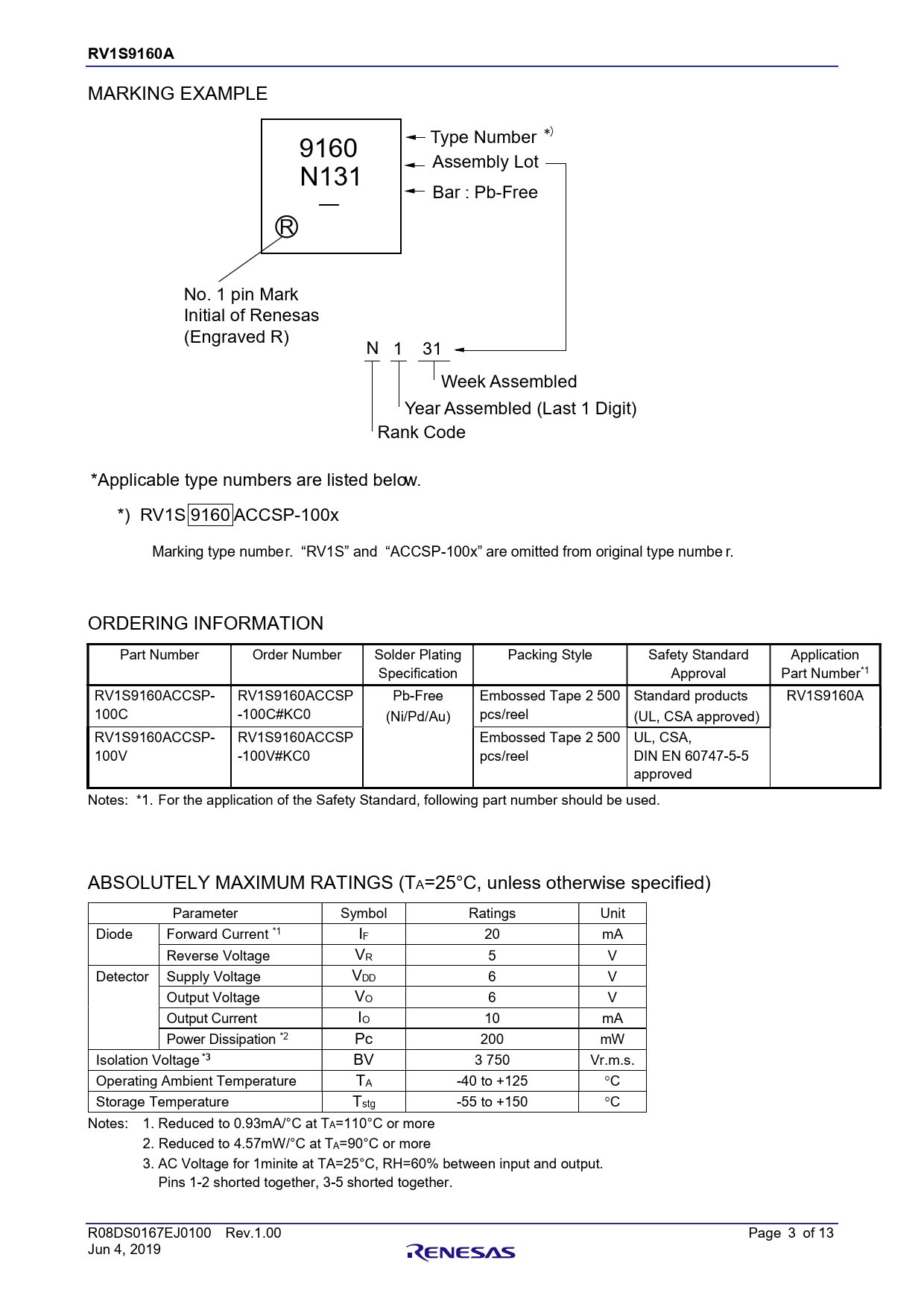 Datasheet RV1S9160A (Renesas) - 3