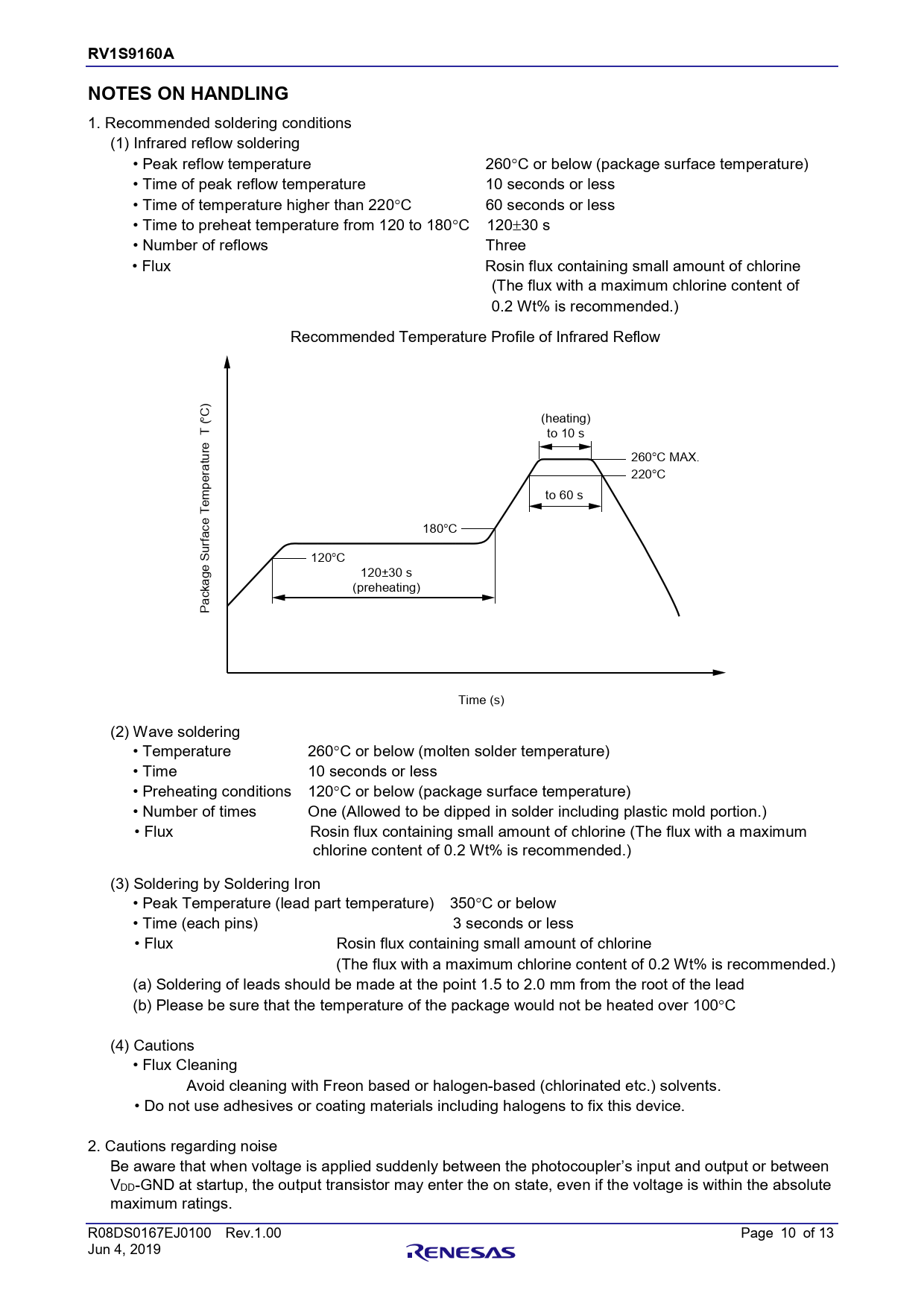 页数 / 页14 / 10 — RV1S9160A. 章題. NOTES. ON. HANDLING. 1. Recommended. soldering. …