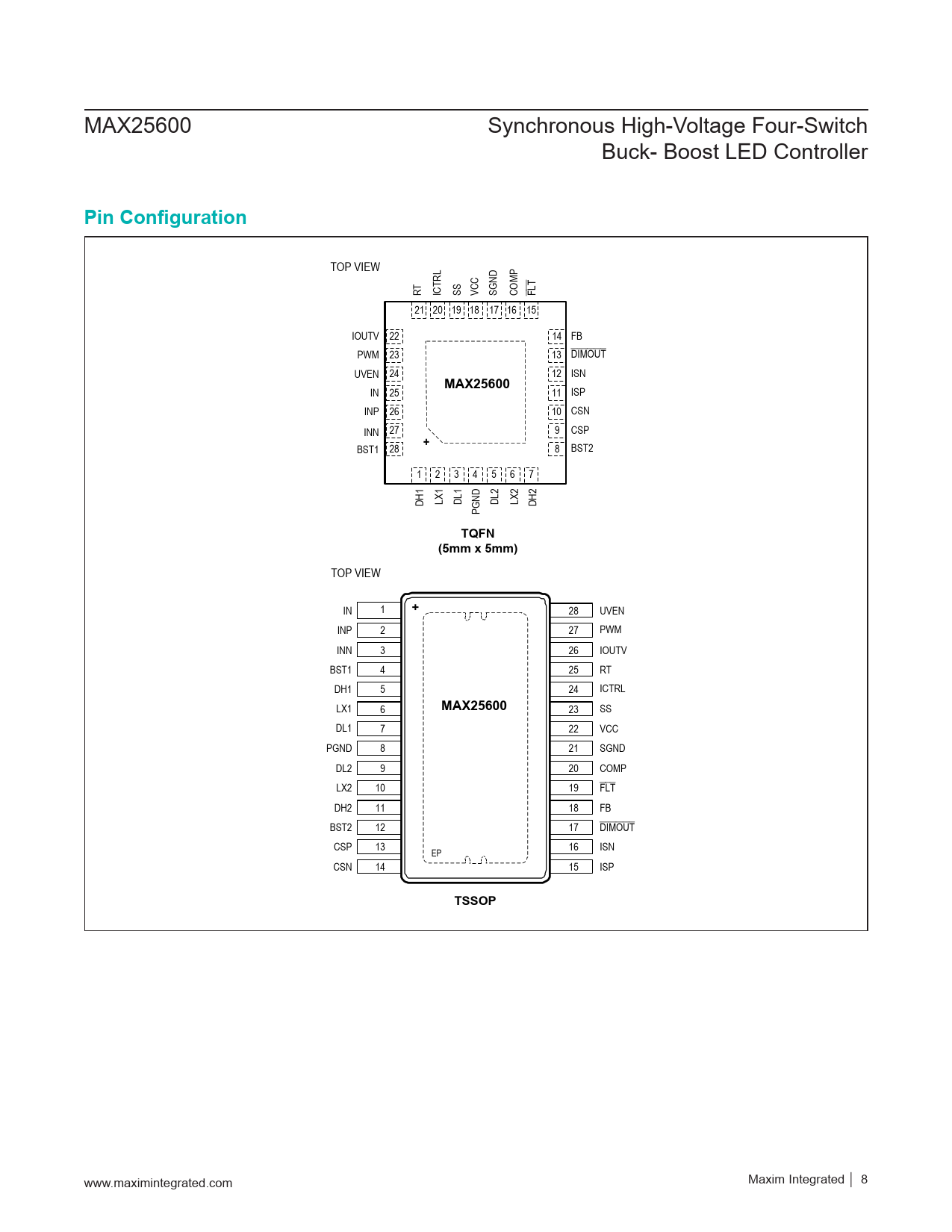 | 页数 / 页 | 24 / 8 — Pin Configuration. MAX25600. TQFN. (5mm x 5mm). TSSOP |