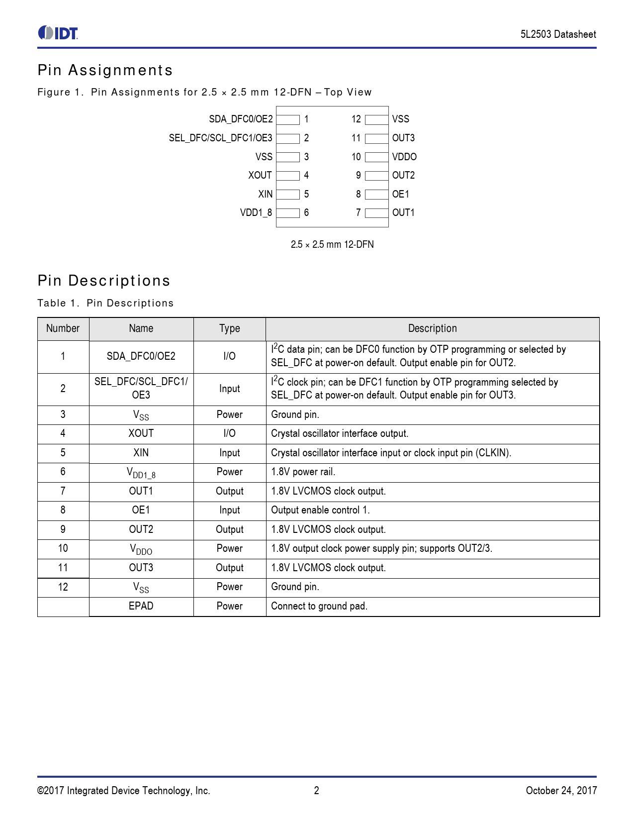 SDA_DFC0/OE2 1 12 VSS SEL_DFC/SCL_DFC1/OE3 2 11 OUT3 VSS 3 10 VDDO XOUT 4 9 OUT2 XIN 5 8 OE1 VDD1_8 6 7 OUT1