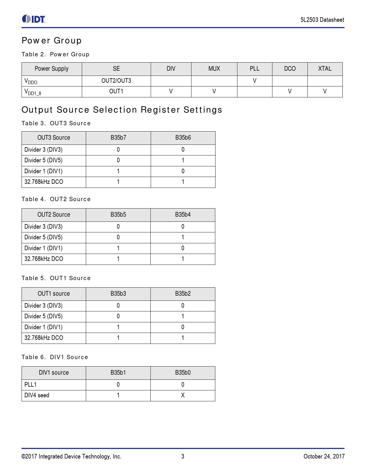 Output Source Selection Register Settings Table 3. OUT3 Source OUT3 Source B35b7 B35b6