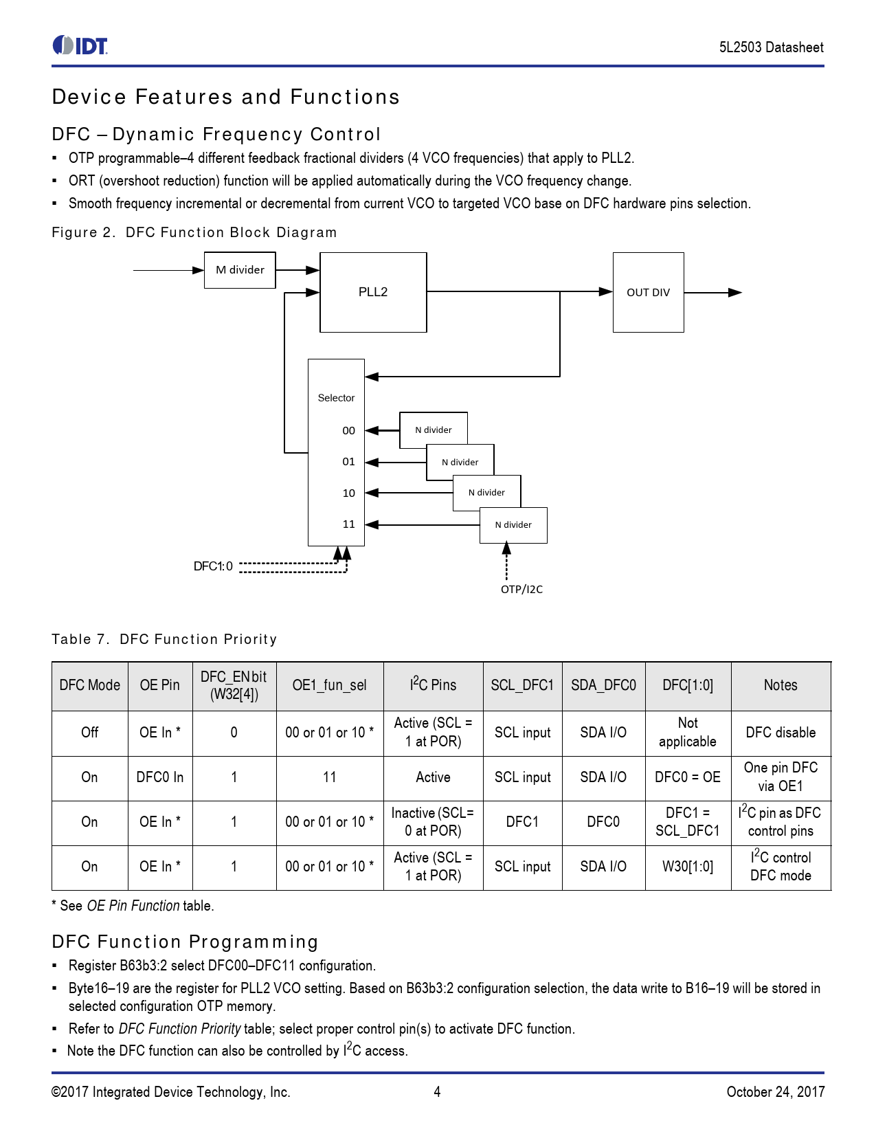 M divider PLL2 OUT DIV Selector 00 N divider 01 N divider 10 N divider 11 N divider DFC1:0 OTP/I2C