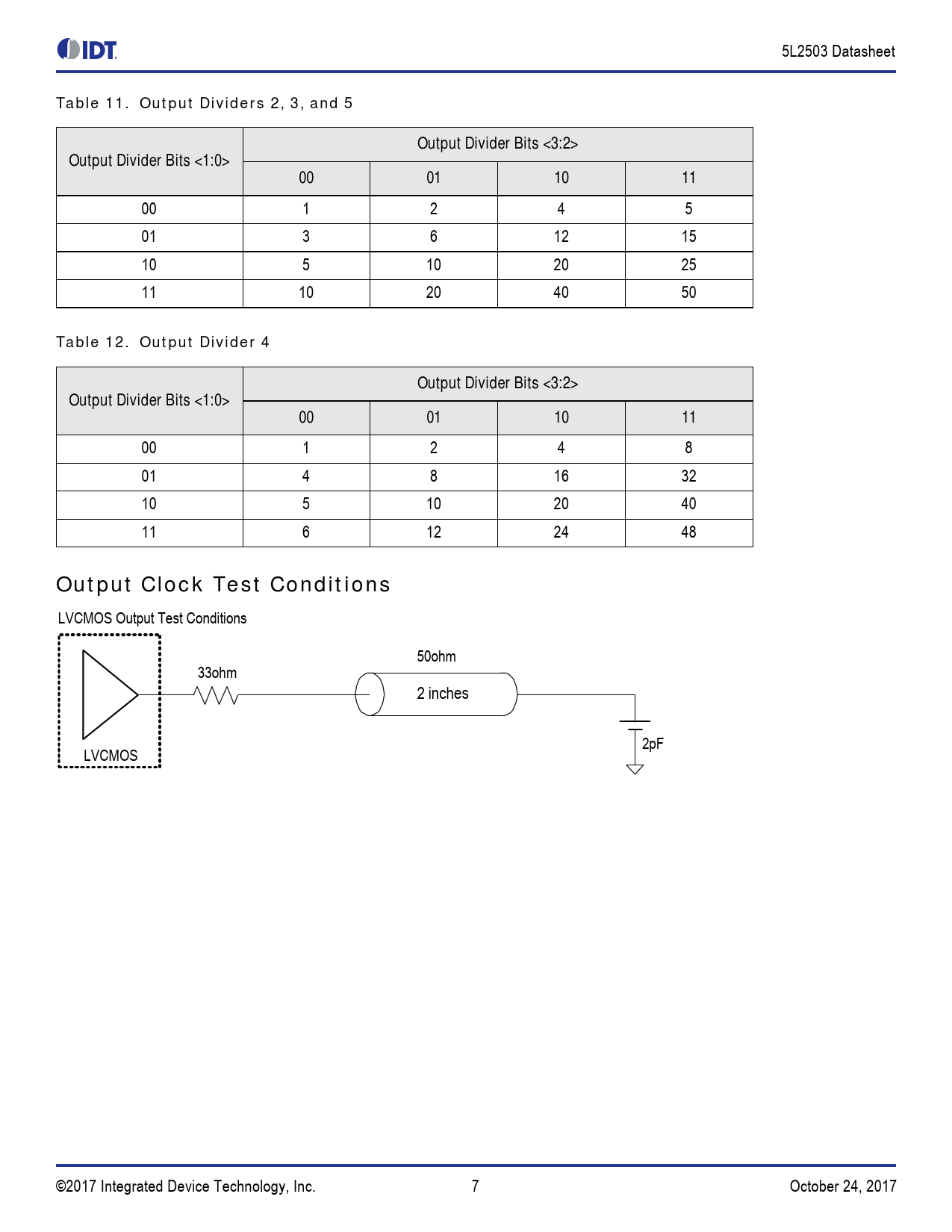 | 页数 / 页 | 29 / 7 — Table 11. Output Dividers 2, 3, and 5. Output Divider Bits <3:2>. … |
