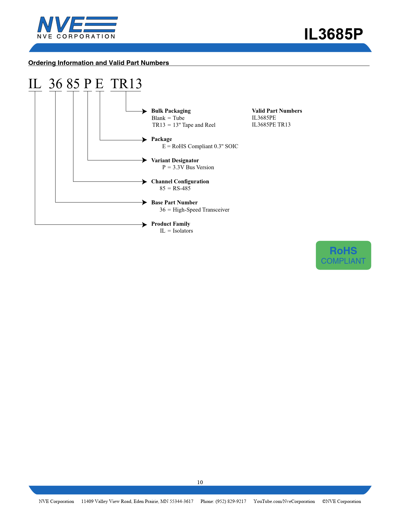 COMPLIANT 10 NVE Corporation 11409 Valley View Road, Eden Prairie, MN 55344-3617 Phone: (952) 829-9217 YouTube.com/NveCorporation ©NVE Corporation