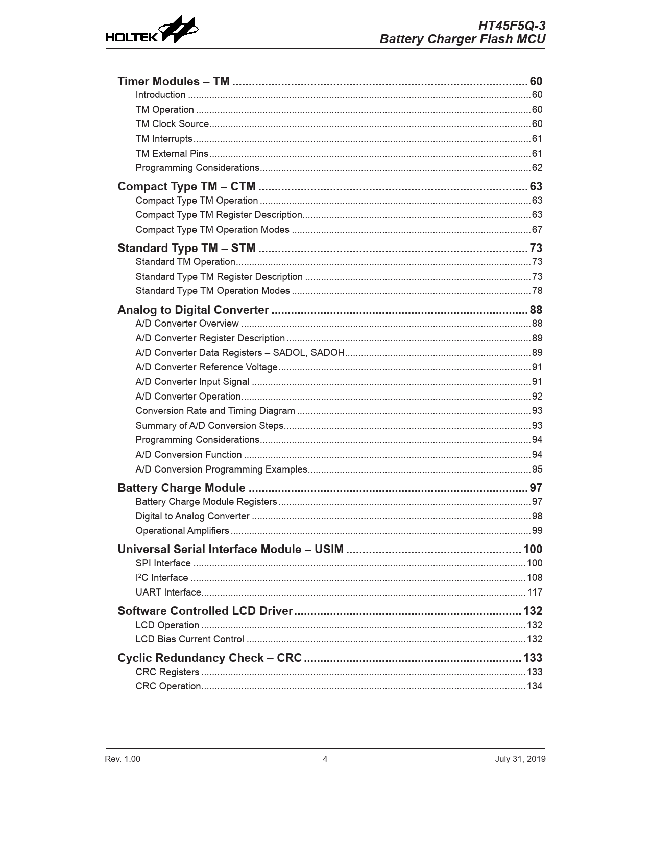 HT45F5Q-3 Battery Charger Flash MCU Timer Modules – TM ...60 Compact Type TM – CTM ...63 Standard Type TM – STM ...73