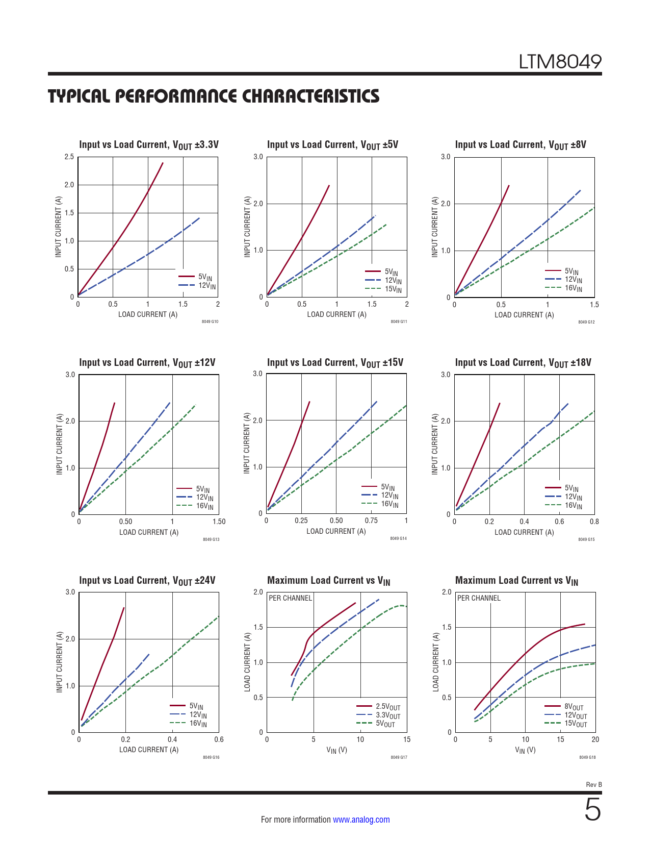 Input vs Load Current, VOUT ±12V Input vs Load Current, VOUT ±15V Input vs Load Current, VOUT ±18V