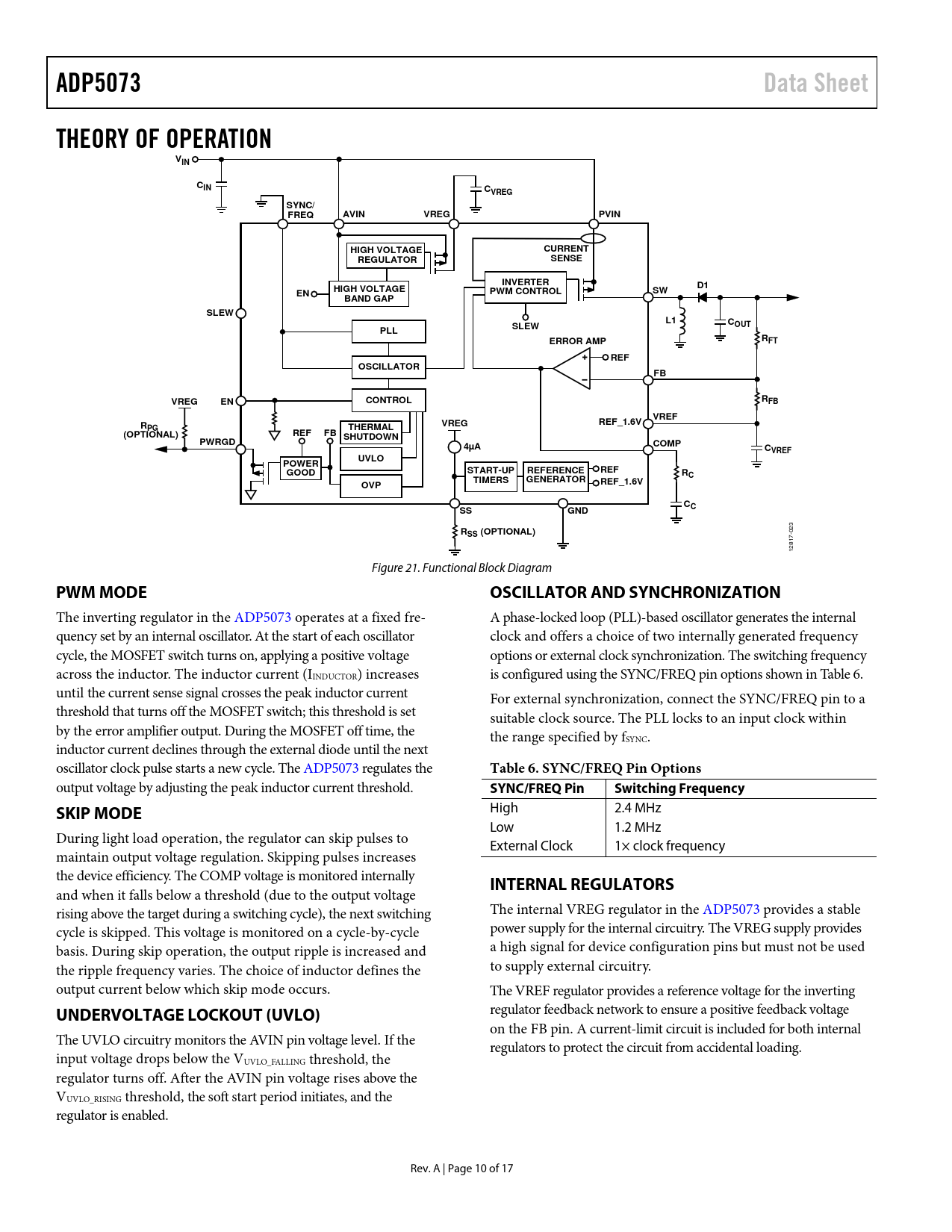 页数 / 页17 / 10 — ADP5073. Data Sheet. THEORY OF OPERATION. VIN. CIN. CVREG. SYNC/. FREQ. …