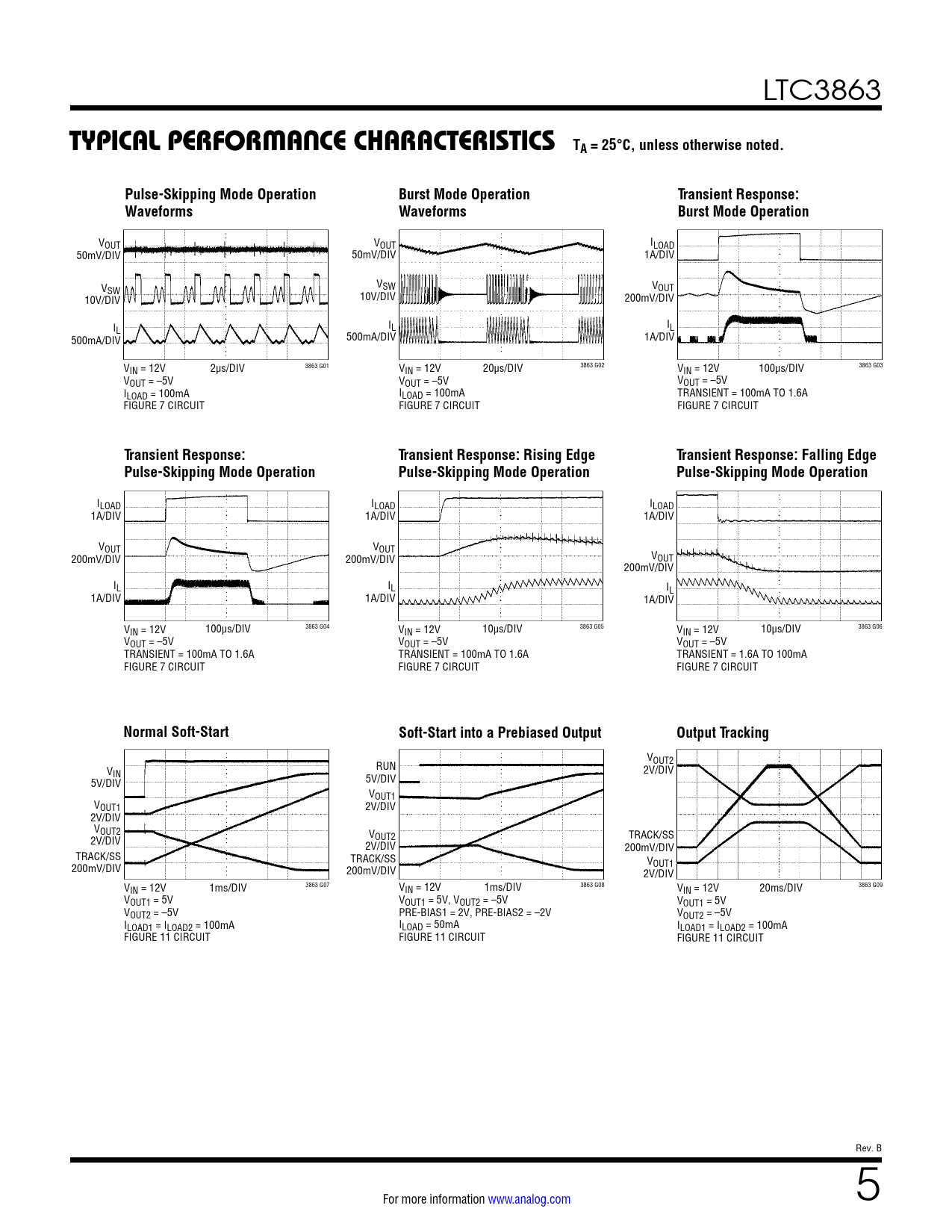VOUT2 V RUN IN 2V/DIV 5V/DIV 5V/DIV VOUT1 VOUT1 2V/DIV 2V/DIV VOUT2 V 2V/DIV OUT2 TRACK/SS 2V/DIV 200mV/DIV TRACK/SS TRACK/SS V 200mV/DIV OUT1 200mV/DIV 2V/DIV VIN = 12V 1ms/DIV 3863 G07 VIN = 12V 1ms/DIV 3863 G08 VIN = 12V 20ms/DIV 3863 G09 VOUT1 = 5V VOUT1 = 5V, VOUT2 = –5V VOUT1 = 5V VOUT2 = –5V PRE-BIAS1 = 2V, PRE-BIAS2 = –2V VOUT2 = –5V ILOAD1 = ILOAD2 = 100mA ILOAD = 50mA ILOAD1 = ILOAD2 = 100mA FIGURE 11 CIRCUIT FIGURE 11 CIRCUIT FIGURE 11 CIRCUIT Rev. B For more information www.analog.com 5 Document Outline Features Applications Typical Application Description Absolute Maximum Ratings Pin Configuration Order Information Electrical Characteristics Typical Performance Characteristics Pin Functions Functional Diagram Operation Applications Information Typical Applications Package Description Revision History Typical Application Related Parts
