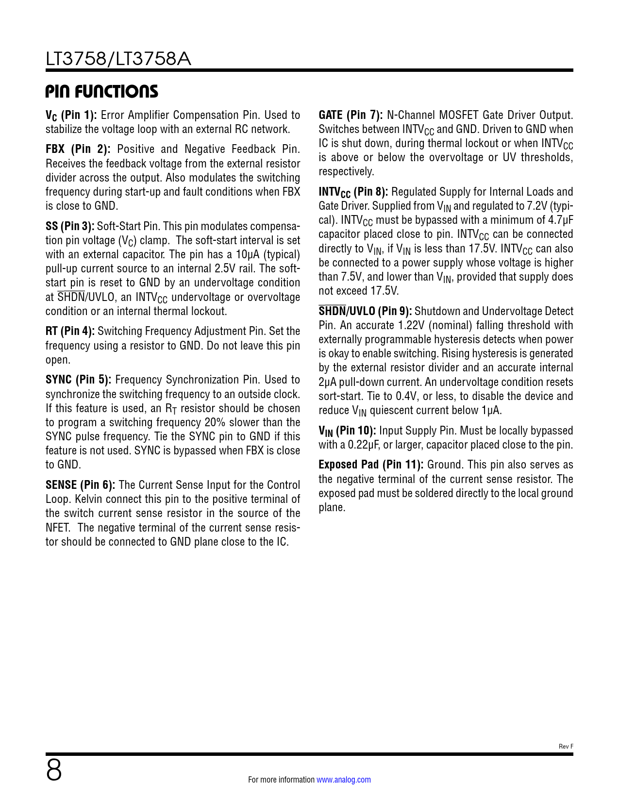 页数 / 页38 / 8 — PIN FUNCTIONS. VC (Pin 1):. GATE (Pin 7):. FBX (Pin 2):. INTVCC (Pin 8):. …
