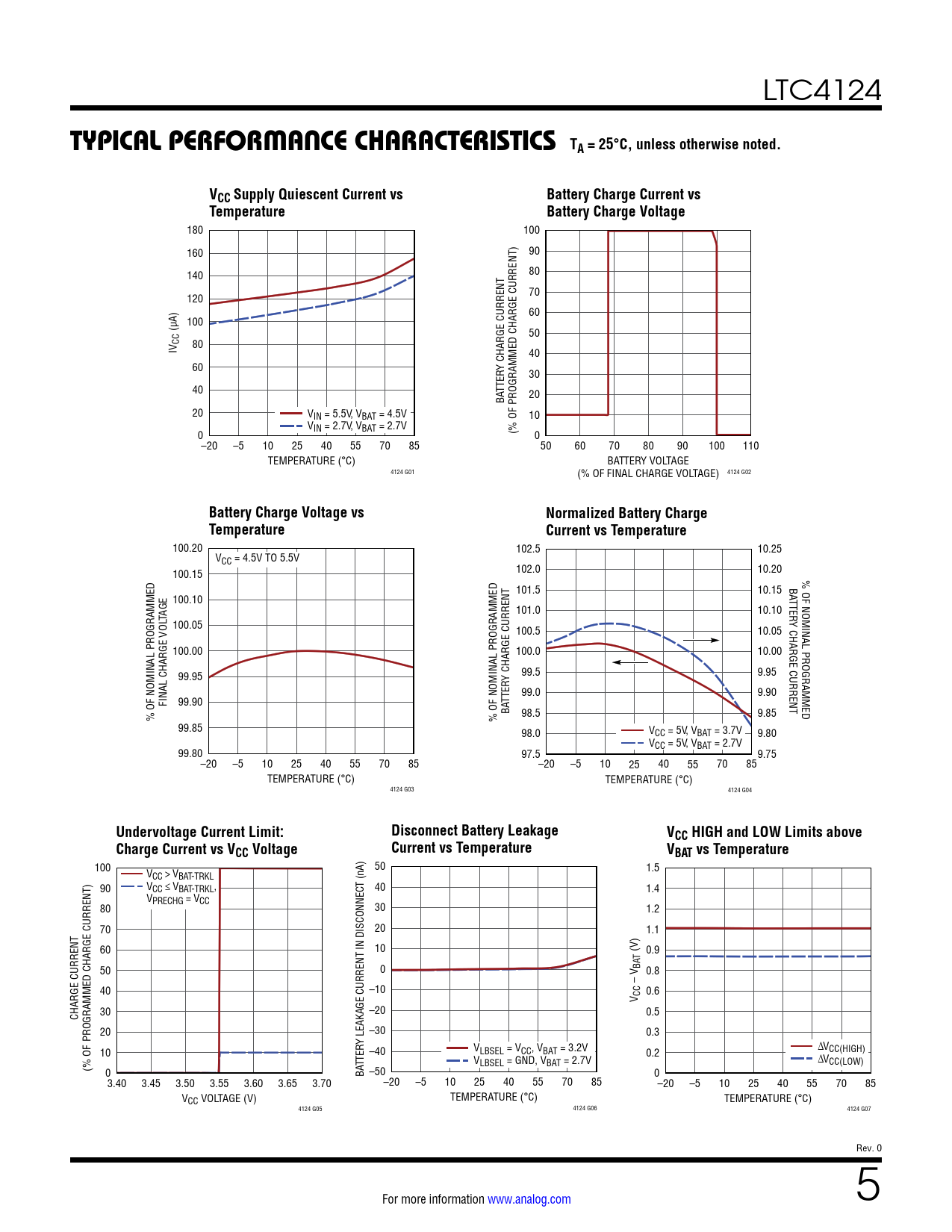 Undervoltage Current Limit: Disconnect Battery Leakage VCC HIGH and LOW Limits above Charge Current vs VCC Voltage Current vs Temperature VBAT vs Temperature