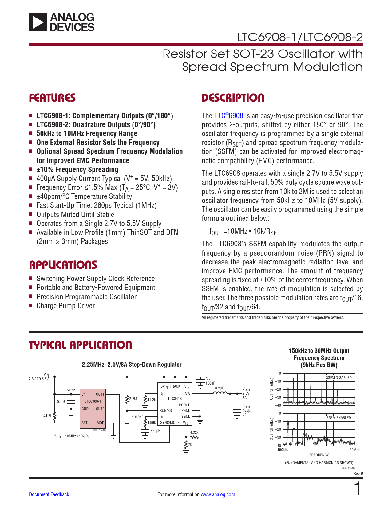 Datasheet LTC6908-1, LTC6908-2 Analog Devices, 修订版: B