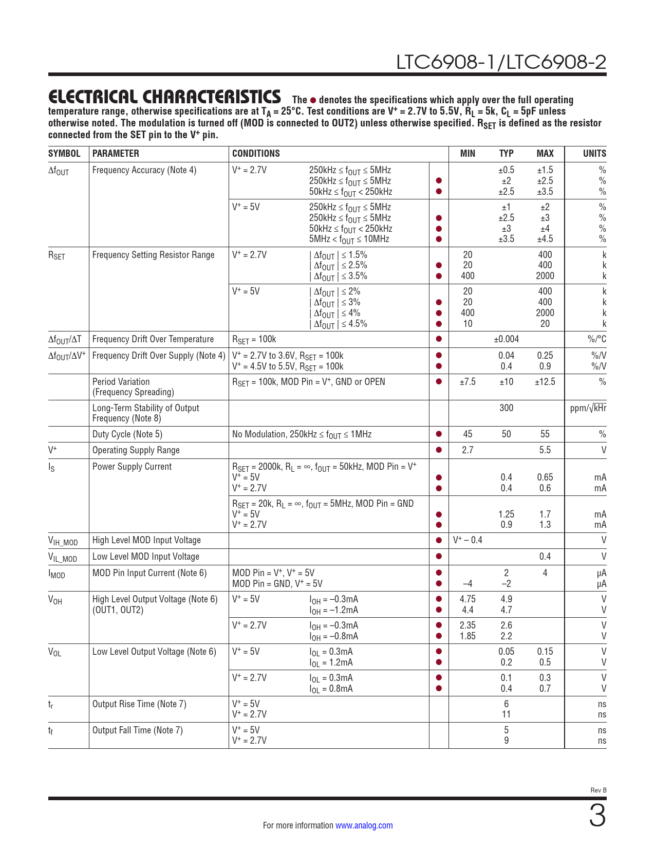 Datasheet LTC6908-1, LTC6908-2 (Analog Devices) - 3
