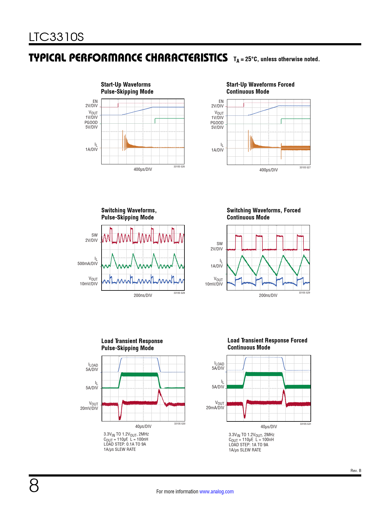 EN EN 2V/DIV 2V/DIV VOUT VOUT 1V/DIV 1V/DIV PGOOD PGOOD 5V/DIV 5V/DIV IL IL 1A/DIV 1A/DIV 400µs/DIV 3310S G26 400µs/DIV 3310S G27