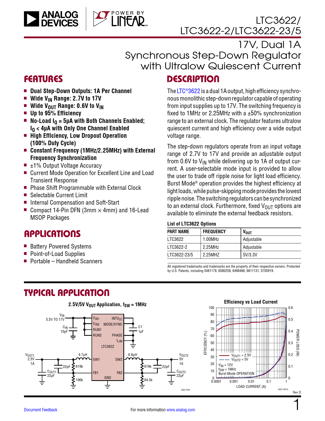 Datasheet LTC3622, LTC3622-2, LTC3622-23/5 Analog Devices, 修订版: D