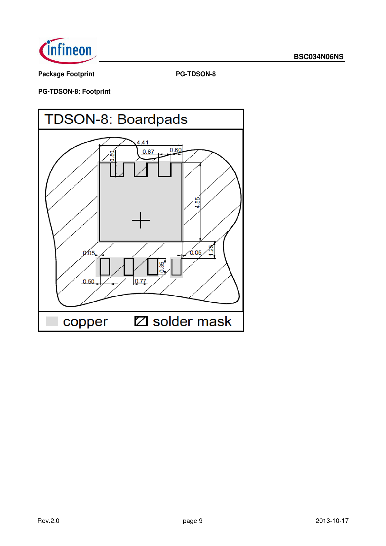 | 页数 / 页 | 10 / 9 — BSC034N06NS. Package Footprint. PG-TDSON-8. PG-TDSON-8: Footprint |