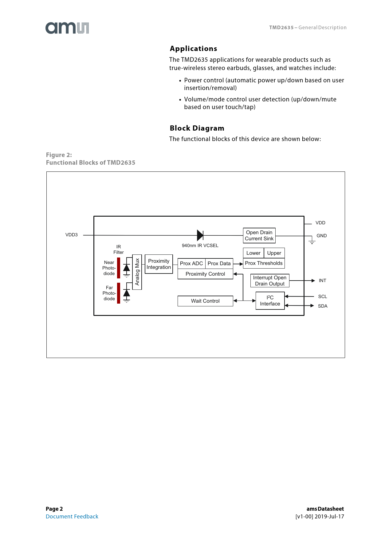 TMD2635 −. Applications. Block Diagram. Figure 2: Functional Blocks of TMD2635. Page 2. ams Datasheet