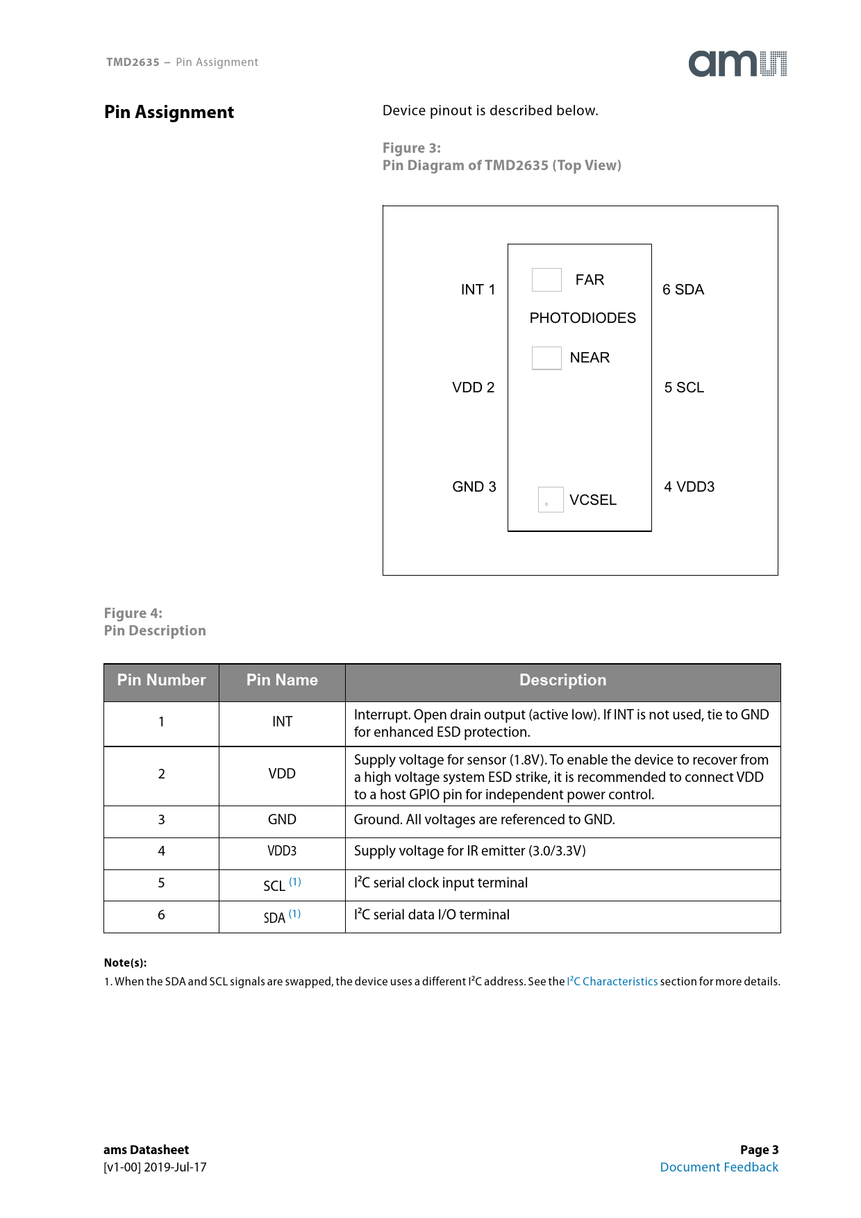 页数 / 页47 / 3 — TMD2635 −. Pin Assignment. Figure 3: Pin Diagram of TMD2635 (Top View). …