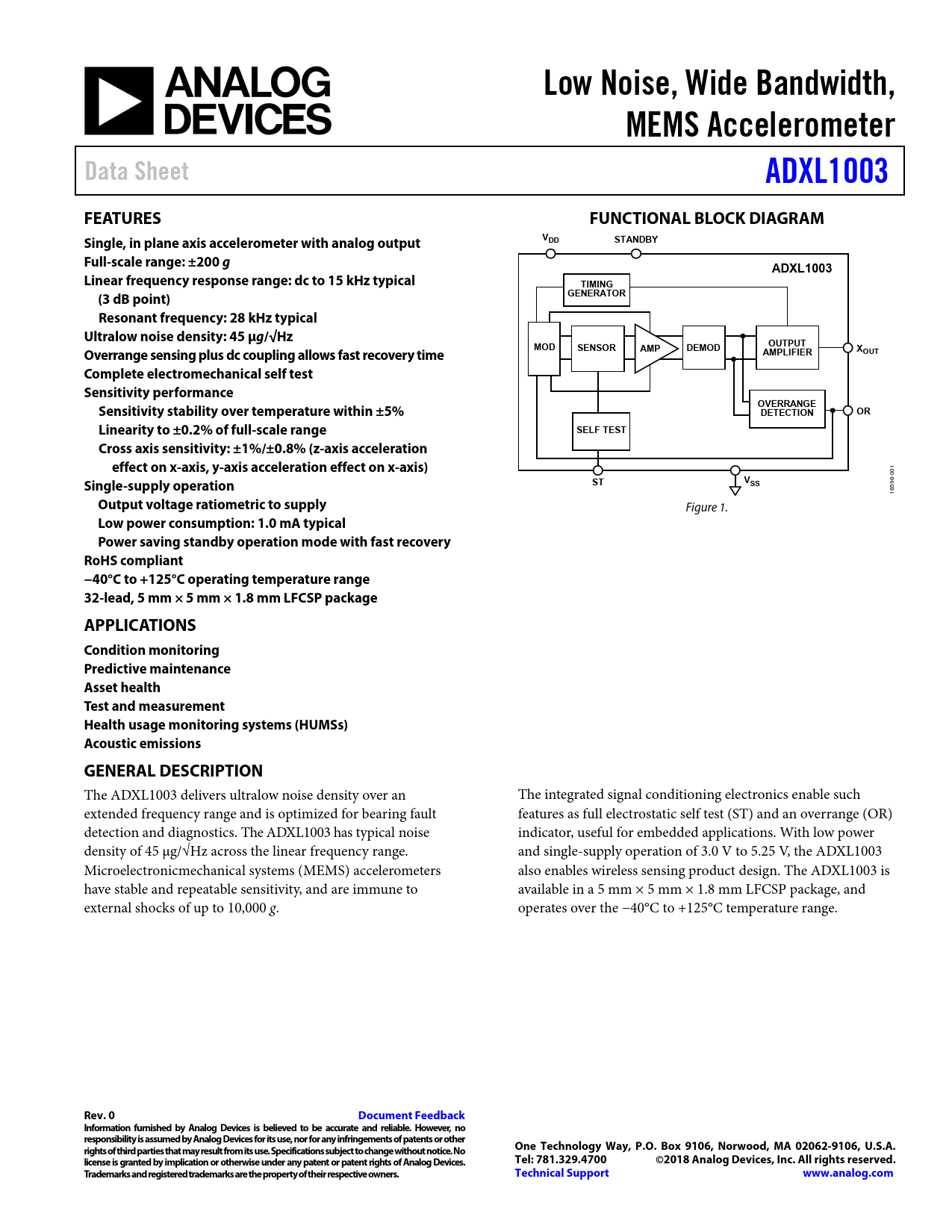 Datasheet ADXL1003 (Analog Devices)