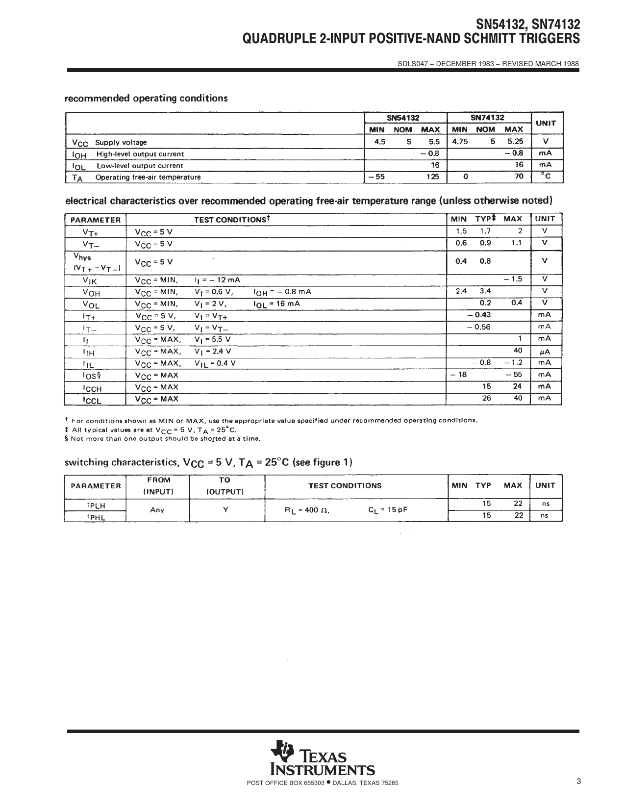 Datasheet SN54132, SN54LS132, SN54S132, SN74132, SN74LS132, SN74S132 (Texas Instruments) - 3