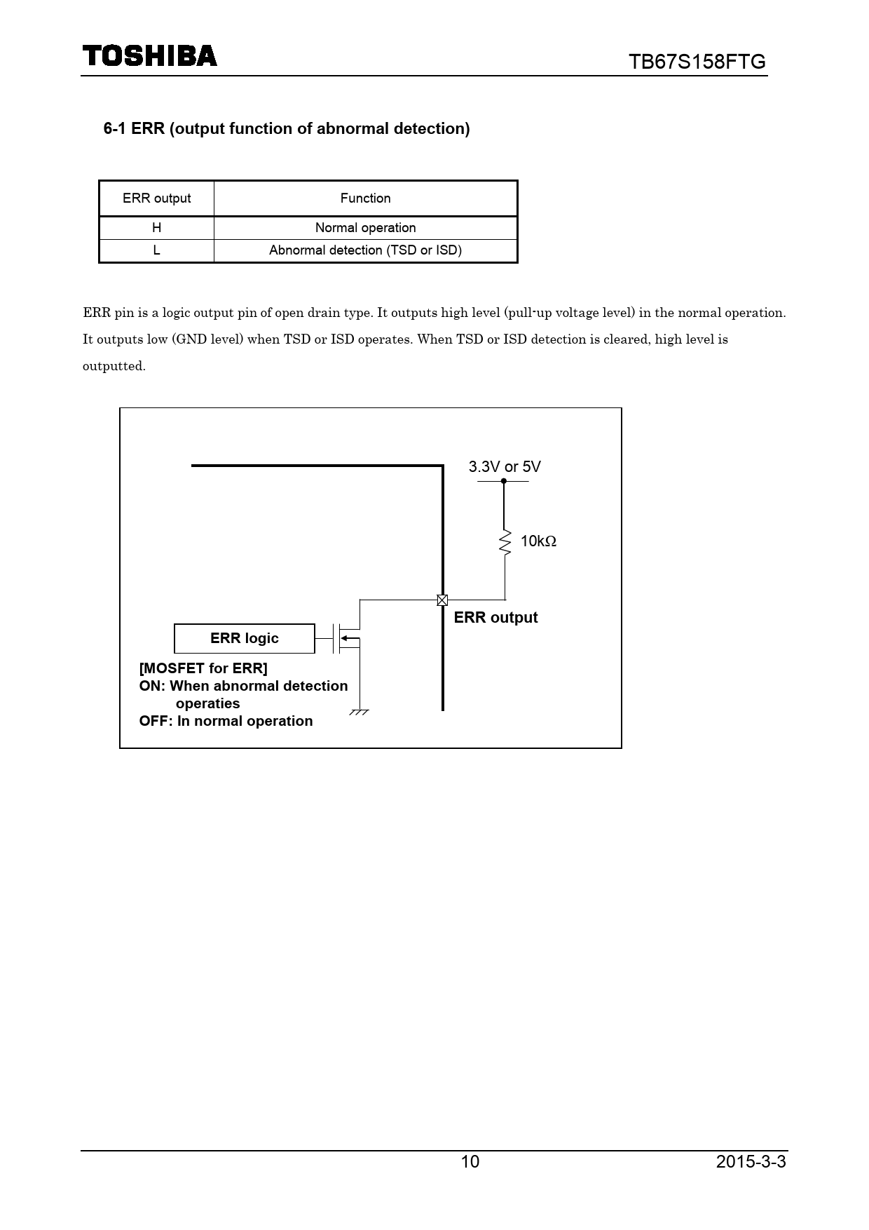 6-1 ERR (output function of abnormal detection) ERR output ERR logic [MOSFET for ERR] ON: When abnormal detection operaties