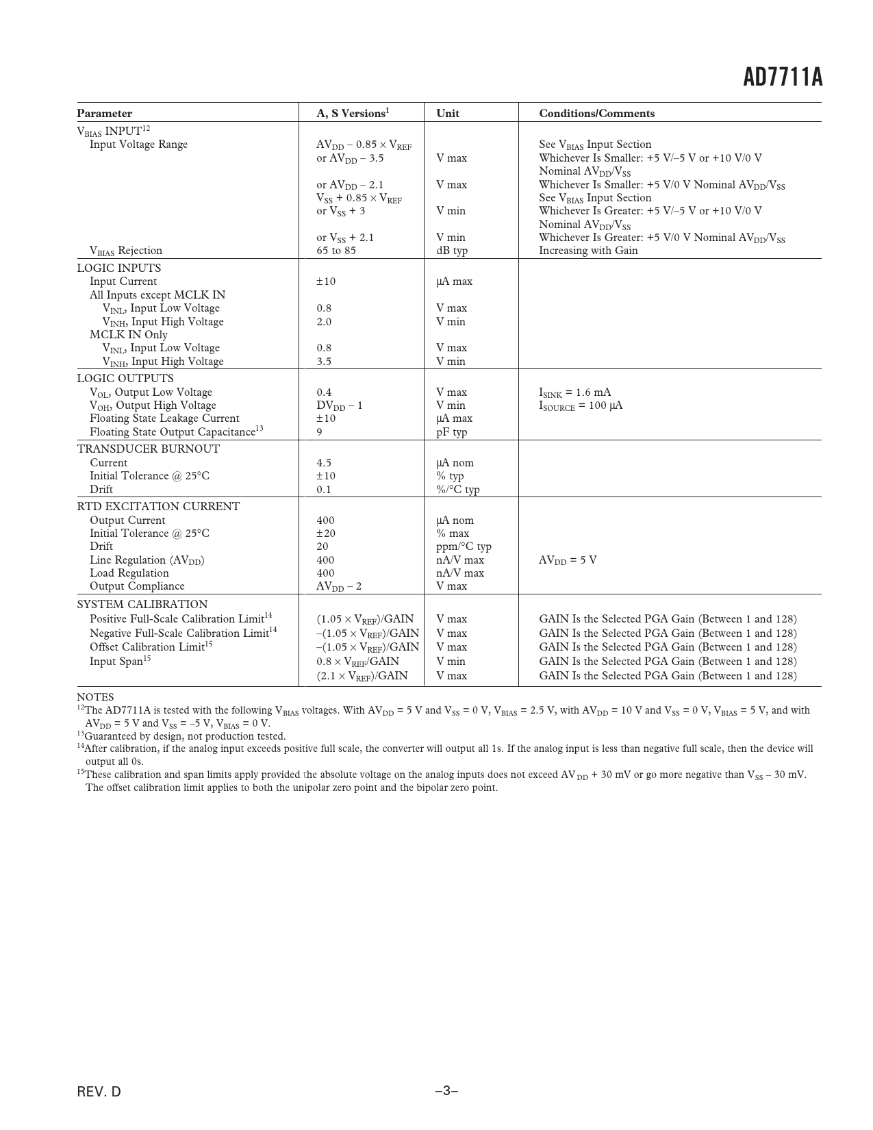 AD7711A Parameter A, S Versions1 Unit Conditions/Comments