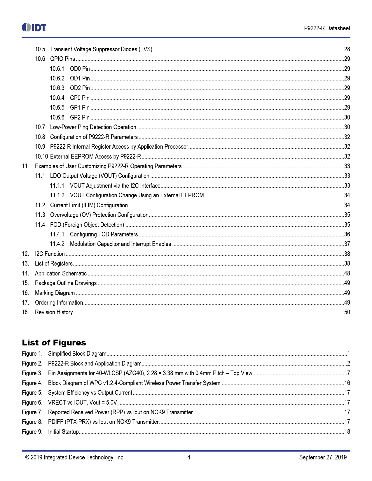 P9222-R Datasheet. 10.5 Transient Voltage Suppressor Diodes (TVS) .28. 10.6 GPIO Pins .29. 10.6.1 OD0 Pin .29