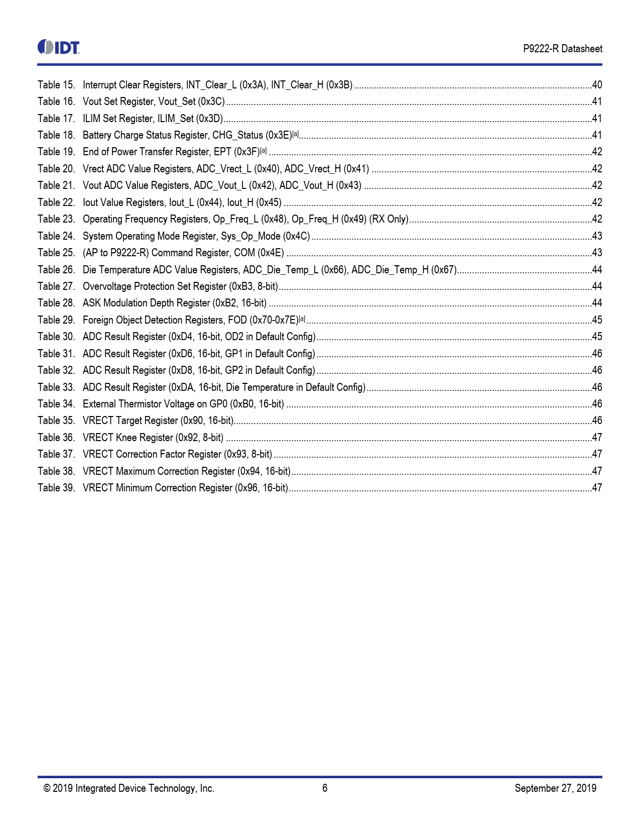 Table 39. VRECT Minimum Correction Register (0x96, 16-bit) .47 © 2019 Integrated Device Technology, Inc. 6 September 27, 2019