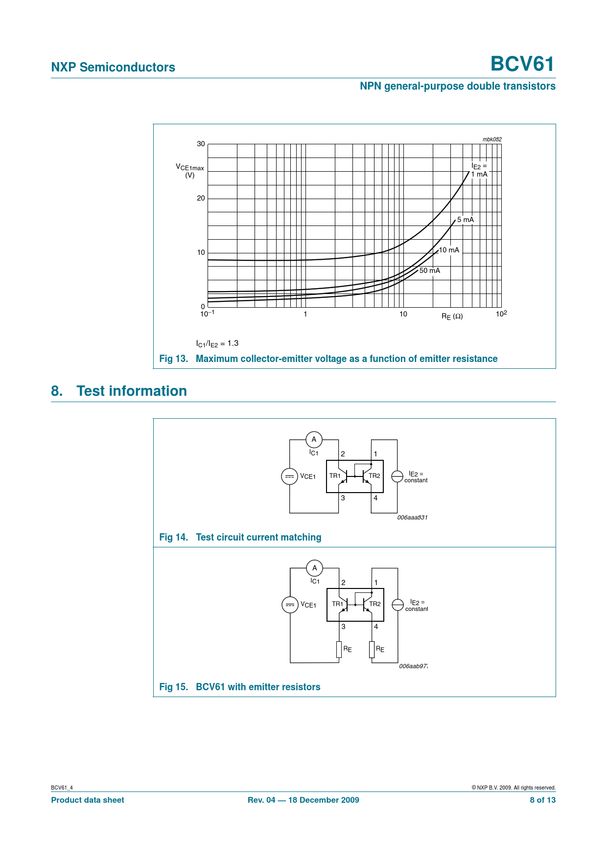Fig 13. Maximum collector-emitter voltage as a function of emitter resistance 8. Test information