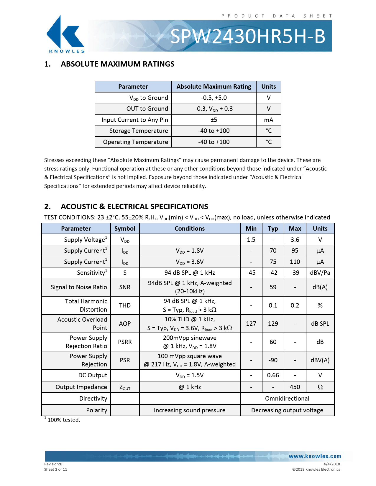 Datasheet SPW2430HR5H-B (Knowles) - 2