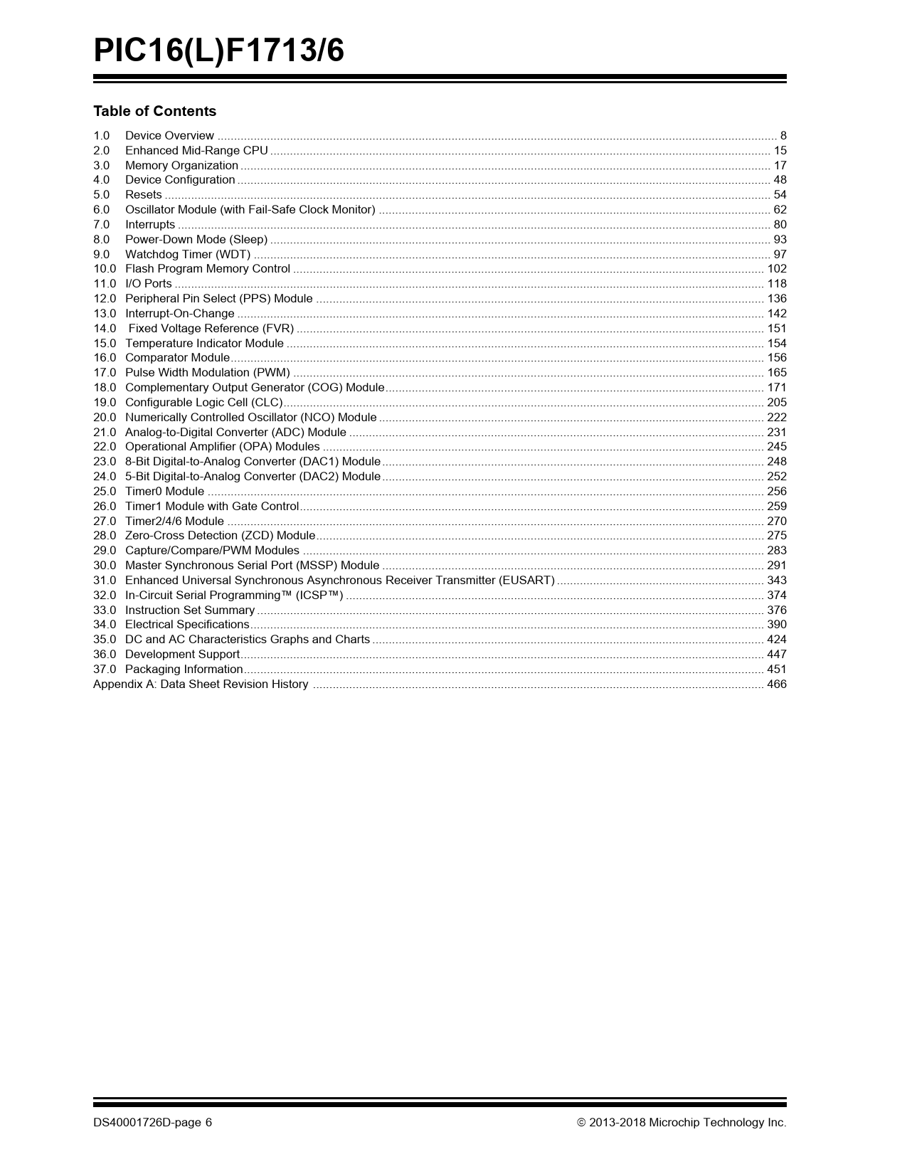| 页数 / 页 | 471 / 6 — PIC16(L)F1713/6. Table of Contents |