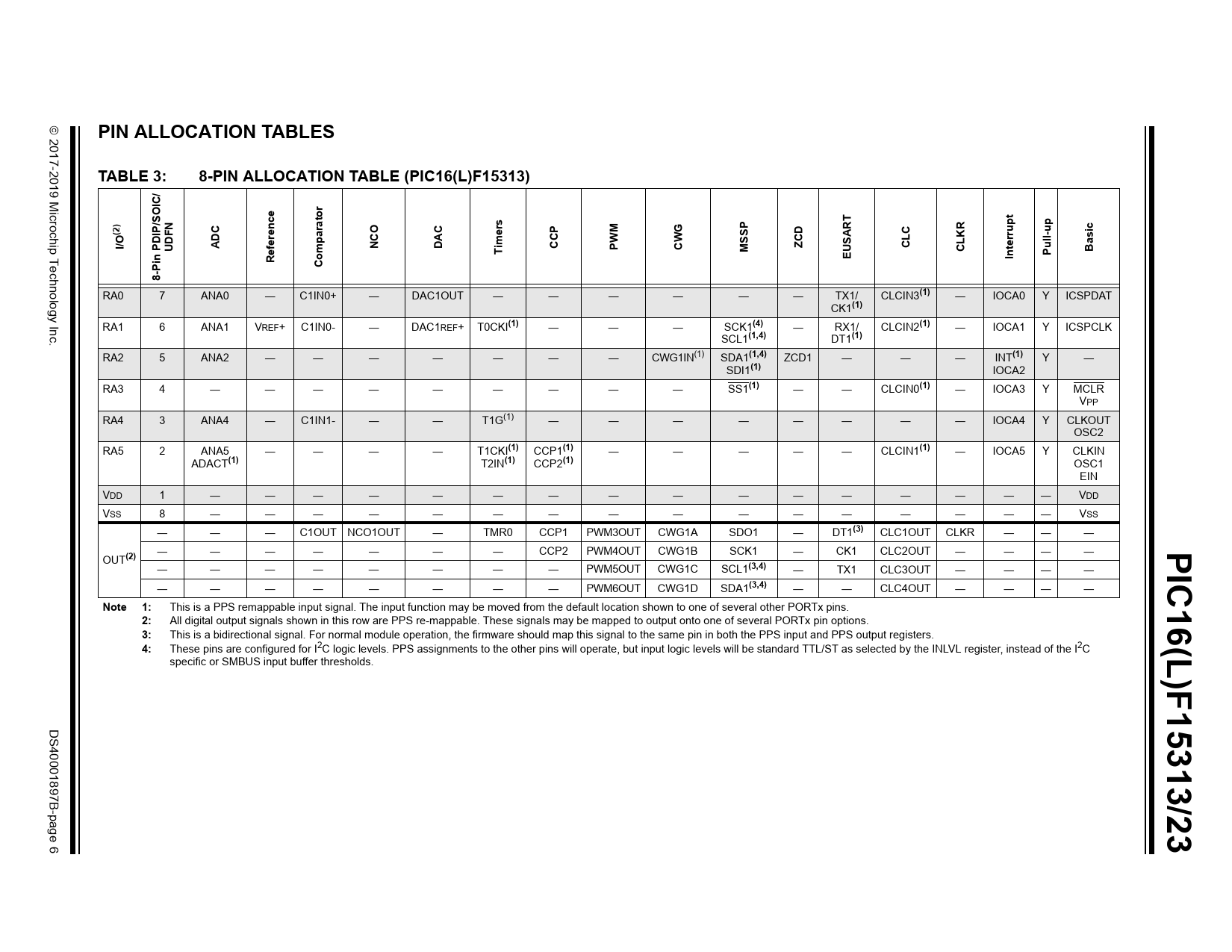 | 页数 / 页 | 537 / 6 — PIN ALLOCATION TABLES. TABLE 3:. 8-PIN ALLOCATION TABLE (PIC16(L)F15313). … |