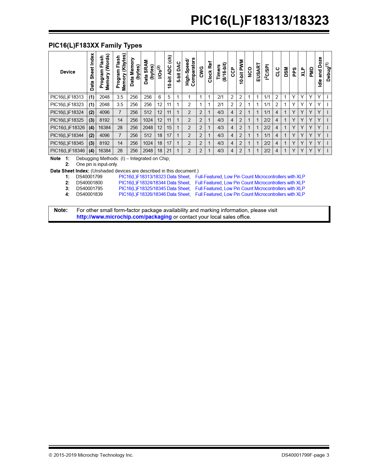Datasheet PIC16(L)F18313/18323 (Microchip) - 3 制造商 Microchip 描述 Full-Featured, Low Pin Count Microcontrollers with XLP 页数 / 页 471 / 3 — PIC16(L)F18313/18323. PIC16(L)F183XX Family Types. es). las. rd o. ors. … 文件格式/大小 PDF / 6.4 Mb 文件语言 英语