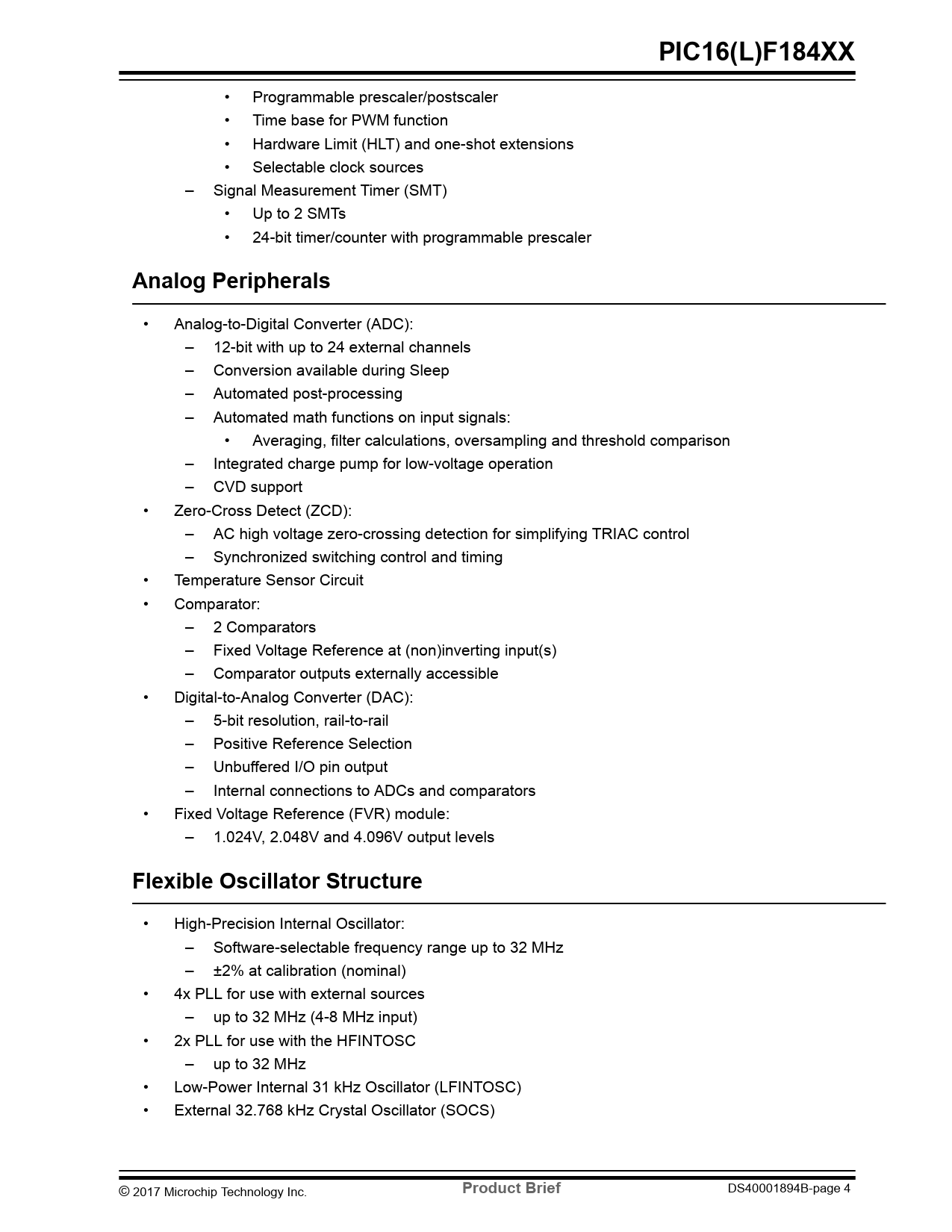 | 页数 / 页 | 18 / 4 — PIC16(L)F184XX. Analog Peripherals. Flexible Oscillator Structure. … |
