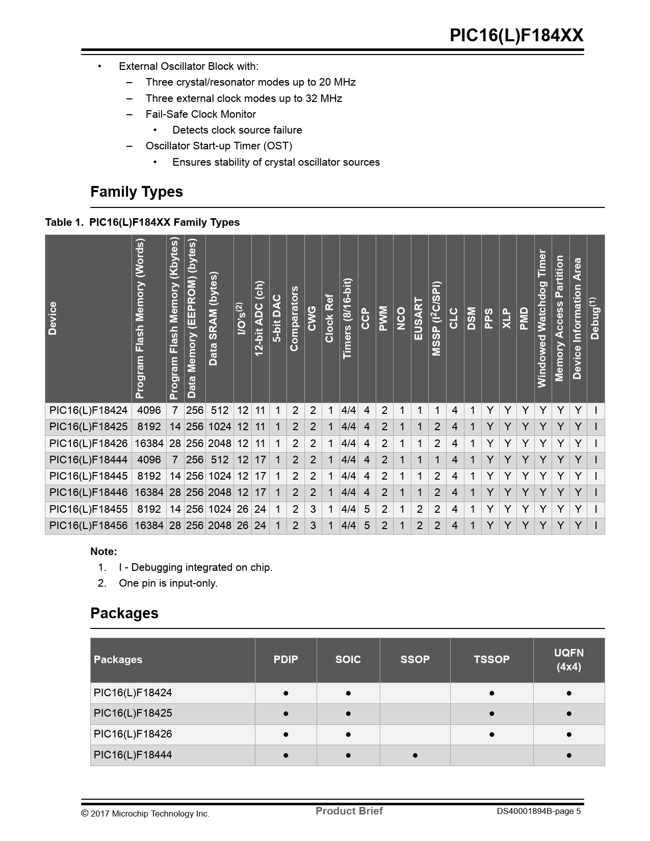 | 页数 / 页 | 18 / 5 — PIC16(L)F184XX. Family Types. Table 1. PIC16(L)F184XX Family Types. … |