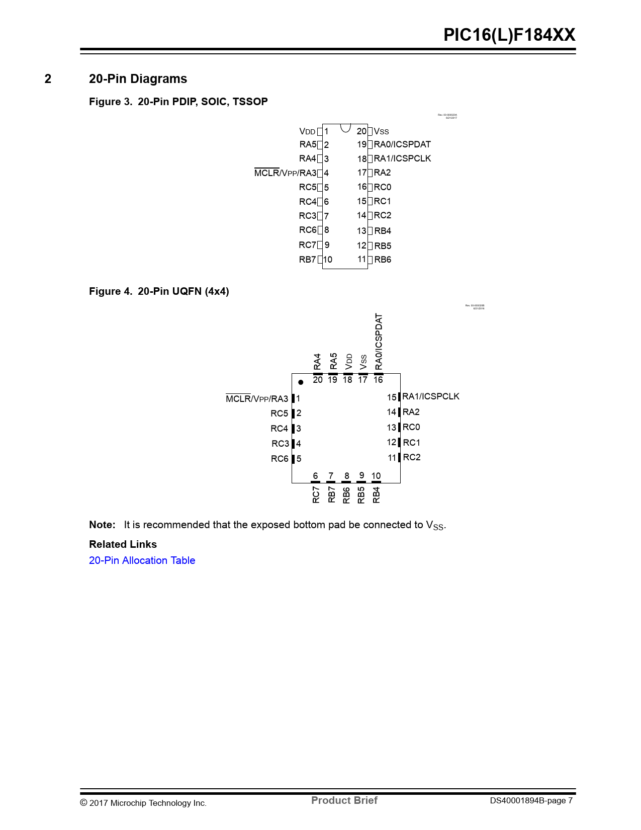 20-Pin Allocation Table © 2017 Microchip Technology Inc.