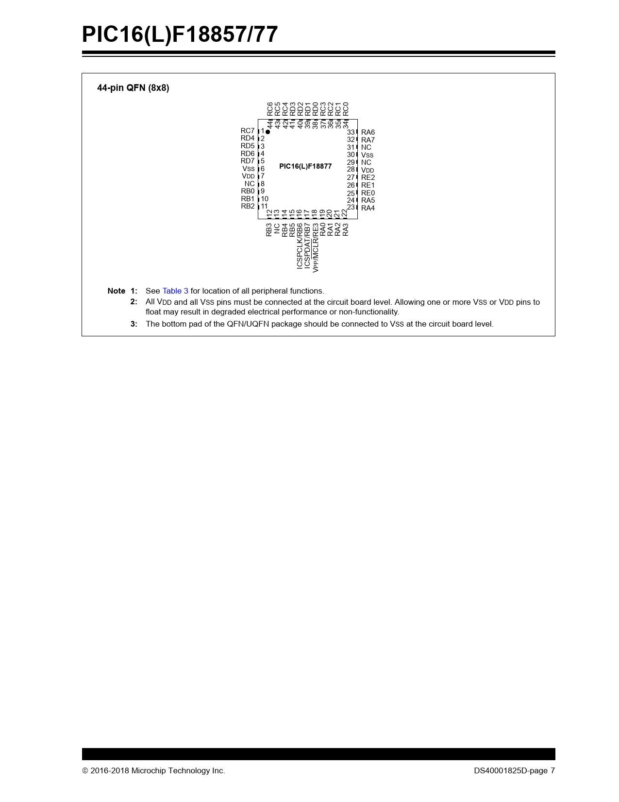 PIC16(L)F18857/77. 44-pin QFN (8x8). PIC16(L)F18877. Note 1: