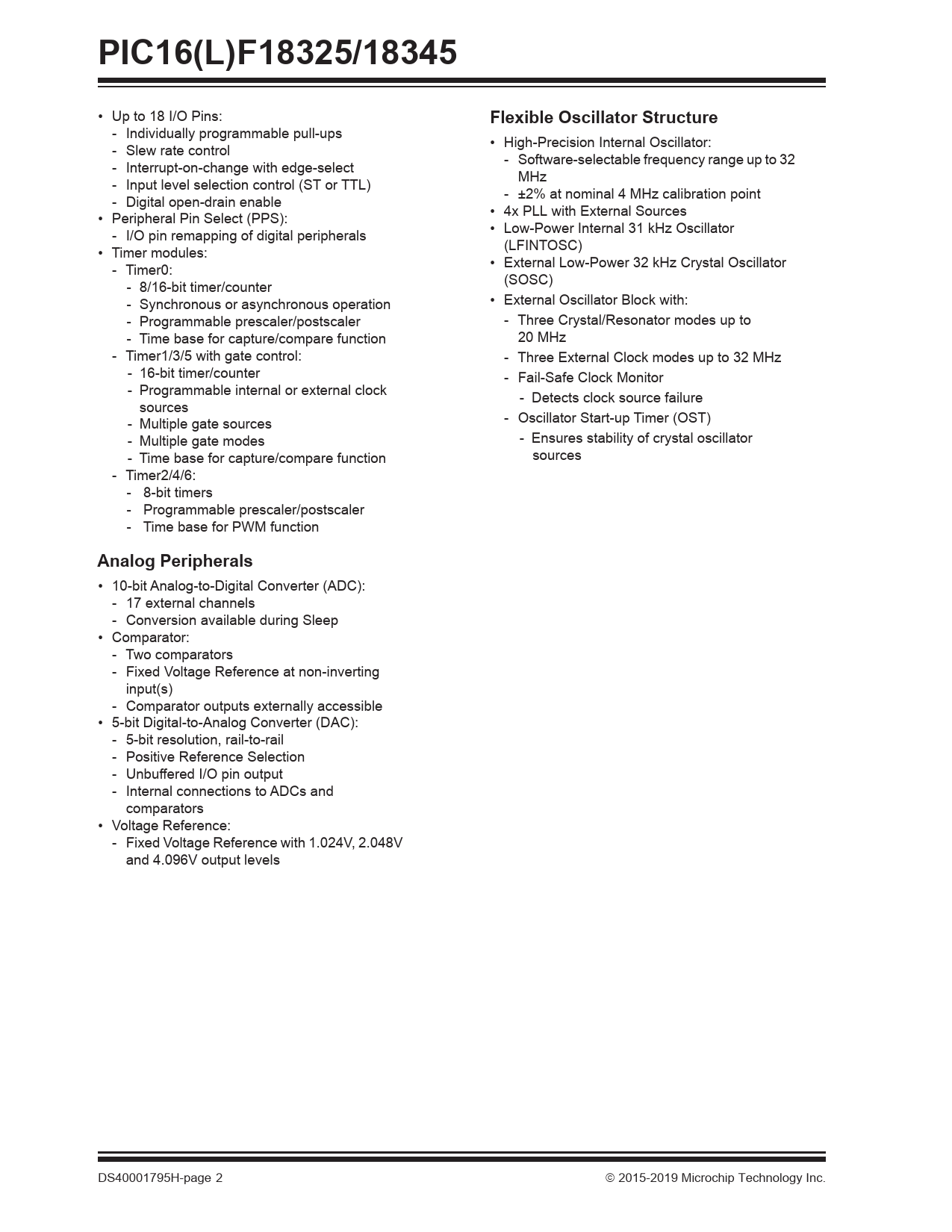 | 页数 / 页 | 498 / 2 — PIC16(L)F18325/18345. Flexible Oscillator Structure. Analog Peripherals |