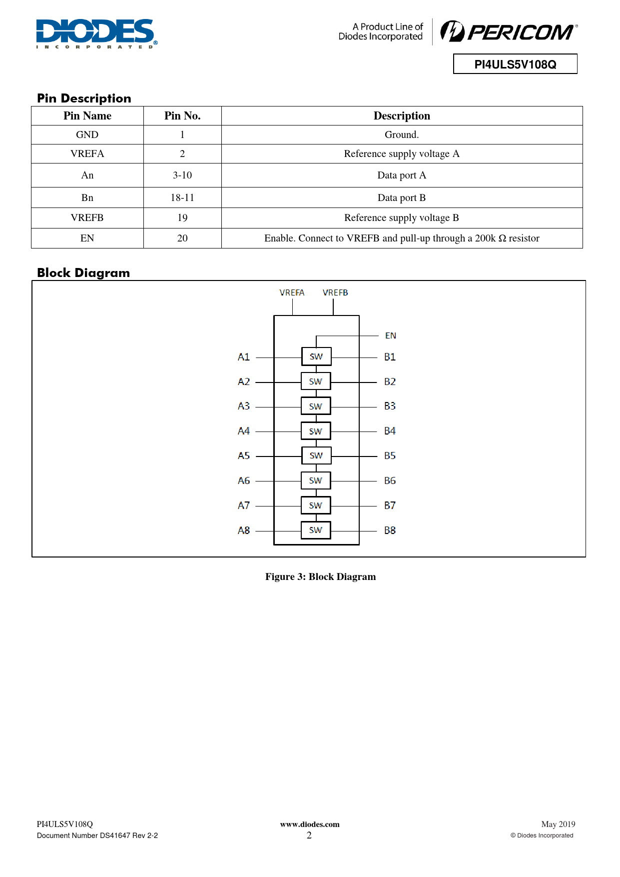 PI4ULS5V108Q. Pin Description. Pin Name. Pin No. Description. Block Diagram. Figure 3: Block Diagram. www.diodes.com