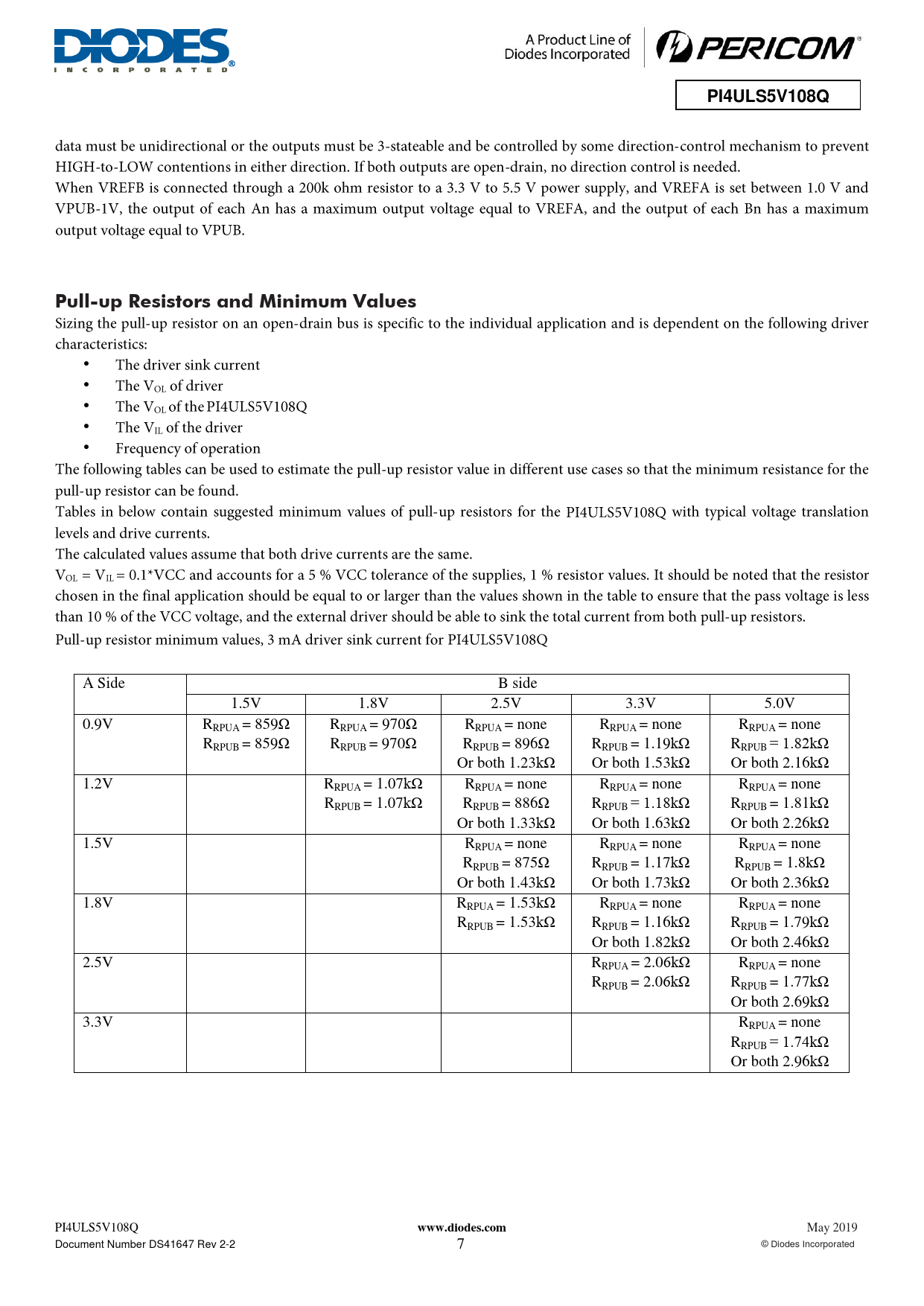 PI4ULS5V108Q. Pull-up Resistors and Minimum Values. www.diodes.com
