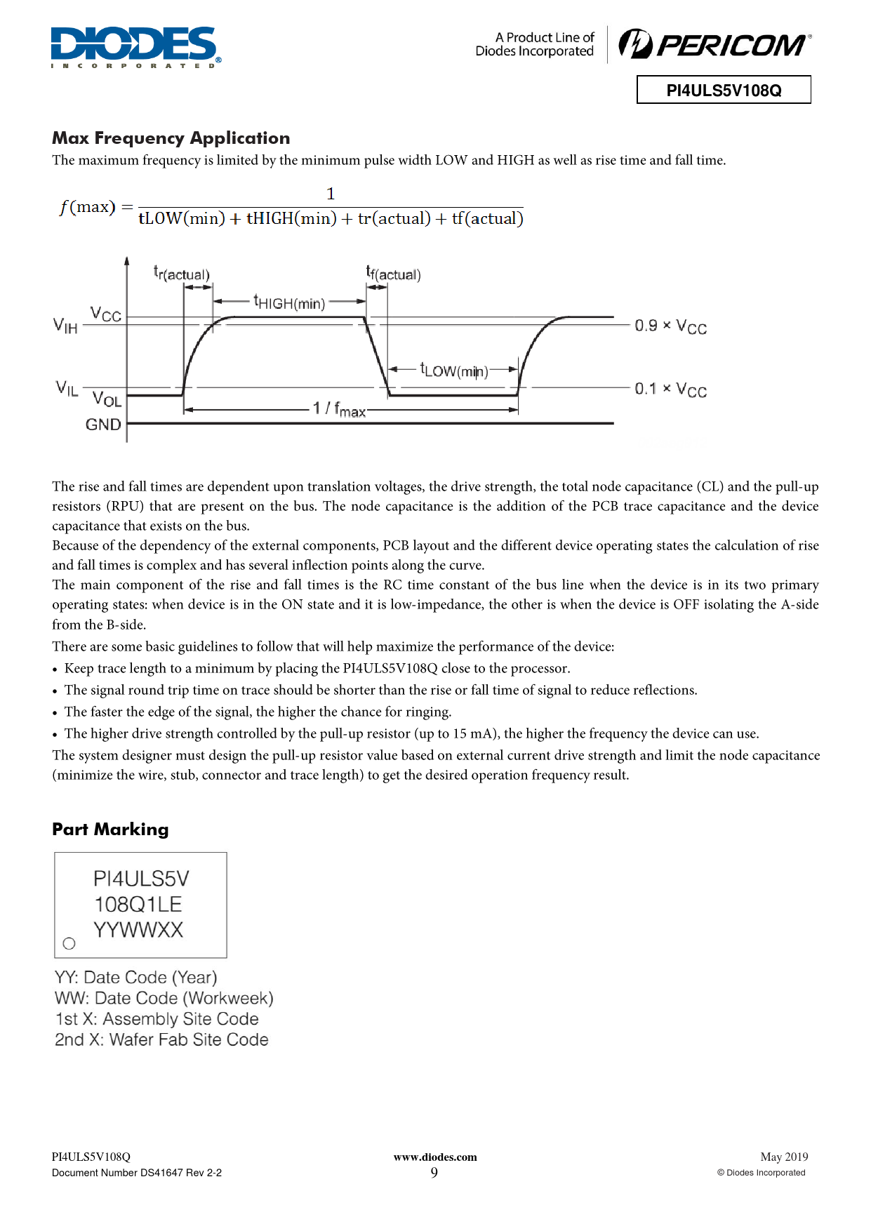 | 页数 / 页 | 11 / 9 — PI4ULS5V108Q. Max Frequency Application. Part Marking. www.diodes.com |