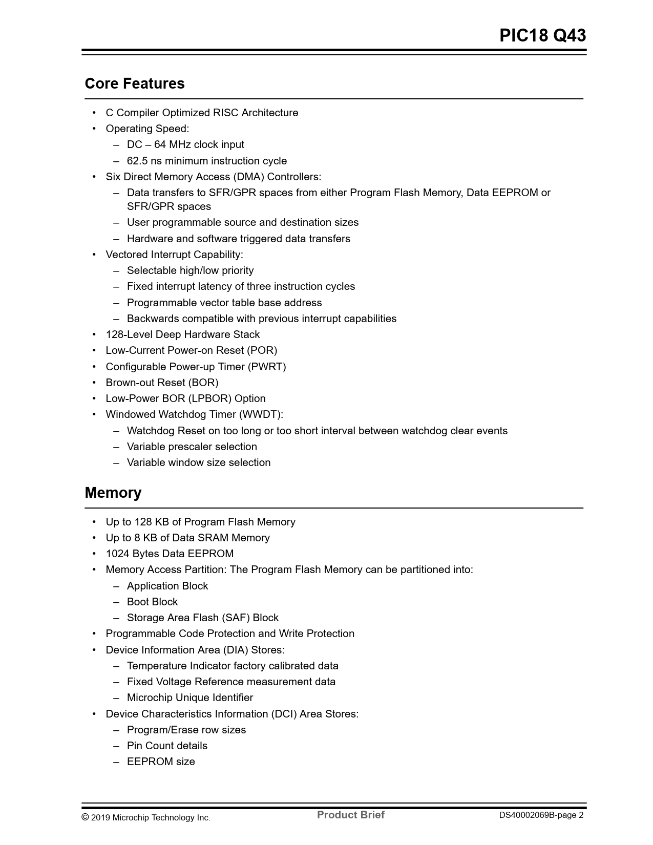 PIC18 Q43. Core Features. Memory. Product Brief